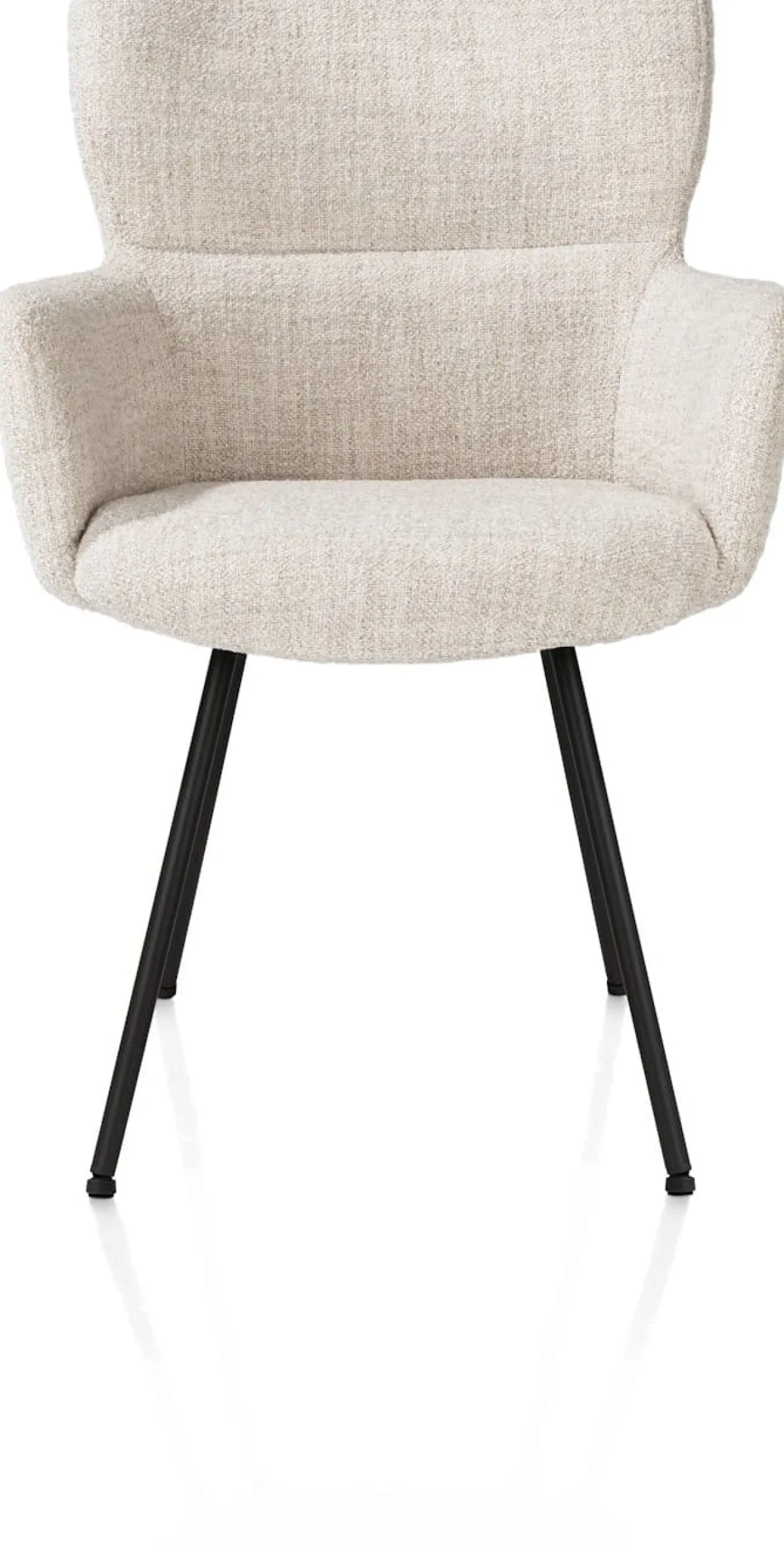 Deze armstoel SAGE in crèmekleur combineert comfort met stijlvol design. Bekleed met stof Luton, een bouclé‑achtige meubelstof met een zachte, aaibare structuur, biedt deze stoel een luxe zitervaring. De vier ranke poten in rough off black zorgen voor een stoer accent en een stabiele basis. Deze moderne armstoel past perfect aan de eettafel of als sfeervolle toevoeging in je interieur. Kijk ook eens naar de andere varianten van armstoel SAGE.