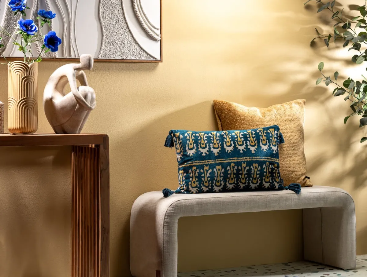 Het Daisy kussen van COCOmaison is een echte eyecatcher die luxe en karakter toevoegt aan je interieur. Dit sierkussen is 40 x 60 cm groot en is gemaakt van een viscose fluweel en katoen. De blauwe vintage look met mooie print zorgt voor een elegante uitstraling in zowel moderne als klassieke interieurs. De speelse klosjes aan de uiteinden van het Daisy kussen voegen een charmant detail toe.