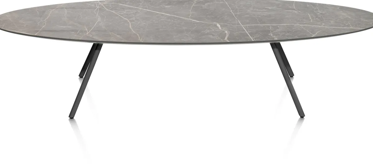 Clearance XOOON NIORA salontafel 150 x 50 cm – HPL marmer licht grijs – grafiet