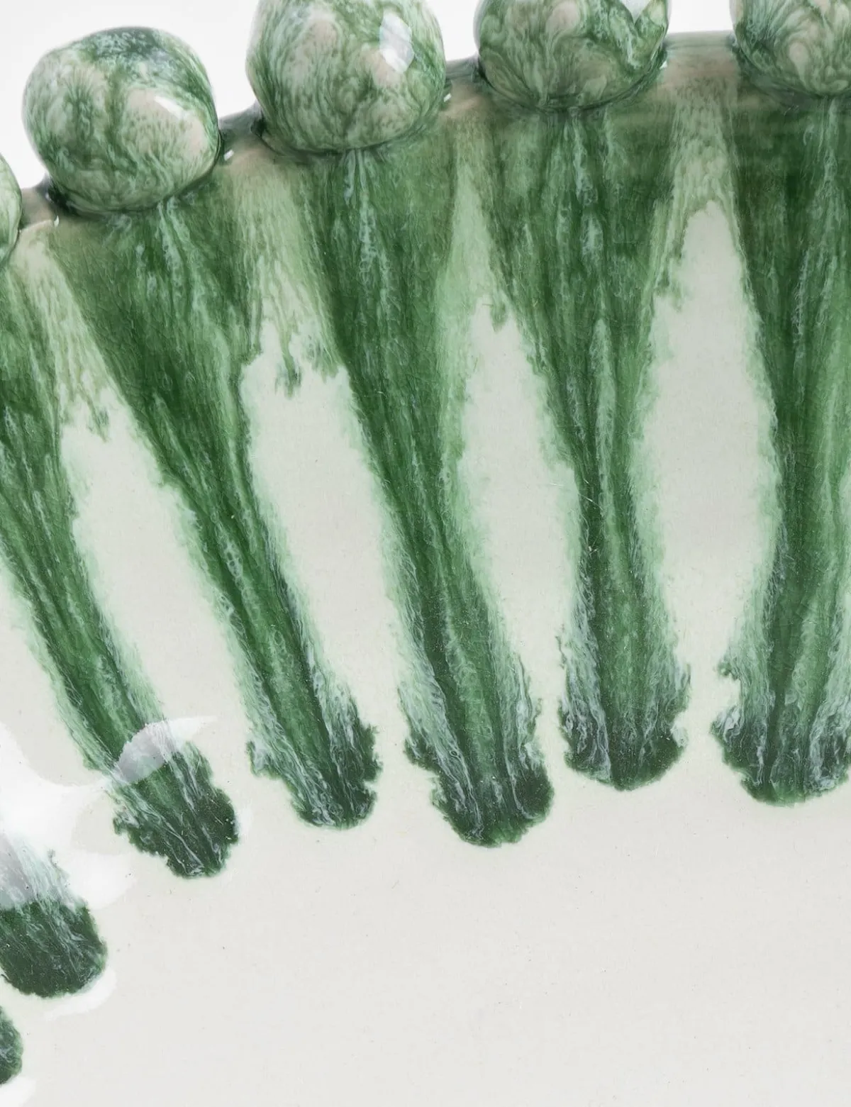 De keramieken Willem schaal van COCOmaison is een sieraad op tafel en multifunctioneel in gebruik. Hij heeft een doorsnede van 40 cm en is 11 cm hoog. Je kunt de schaal als fraaie woonaccessoire leeg op tafel zetten, maar het formaat maakt hem heel geschikt als fruitschaal of om ander lekkers op te serveren. De vormgeving is speels en past mooi bij dat van de vaas en hoge pot uit dezelfde serie. Alle drie de ontwerpen zijn hangeschilderd, dus weet je zeker dat je een uniek object in huis haalt, waarvan er geen tweede bestaat.