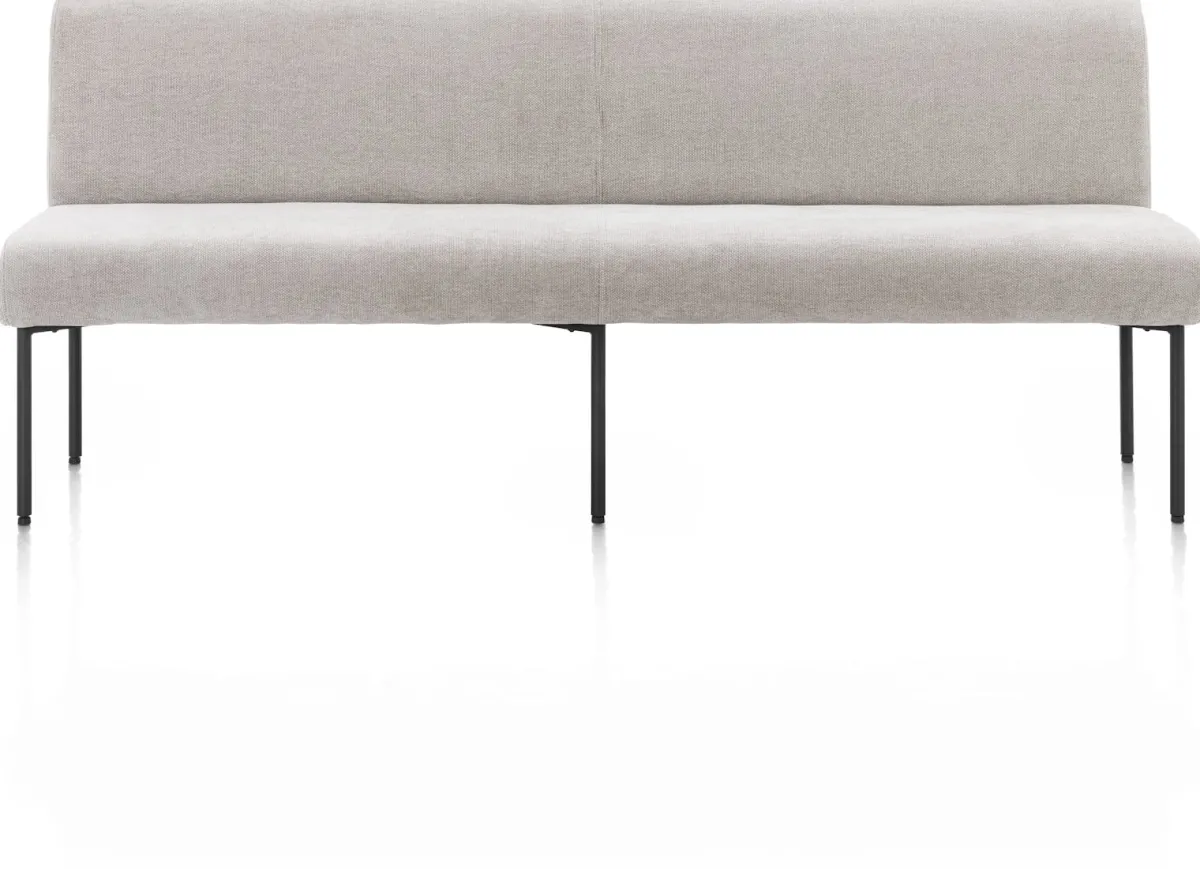 Een eetkamerbank voor extra veel plek aan je eetkamertafel; dat is REVERSO van XOOON! Deze prachtige eetkamerbank stel je qua opstelling volledig naar eigen wens samen. REVERSO is bekleed met de mooie chenillestof Livigno in kiezelkleur. Naar wens shop je hem ook in het bruin. Alle elementen waarin REVERSO verkrijgbaar is, zijn te koppelen en daardoor oneindig met elkaar te combineren. Dit element van 200 cm is ook verkrijgbaar zonder rugleuning. REVERSO is rondom gestoffeerd, waardoor deze eetkamerbank ook prachtig vrij in je eetkamer te plaatsen is. Het rank metalen onderstel in grafietkleur maakt hem helemaal af.