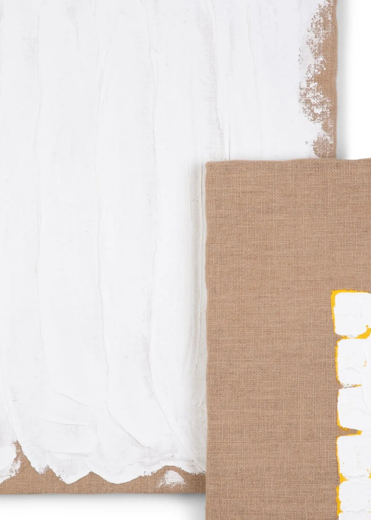 3D wanddecoratie is al een tijdje trendy in woonstyling. En zo lang er zulke fraaie schilderijen in de collectie zitten als de FINN van COCOmaison zal dat ook nog wel even blijven. FINN is vierkant en heeft een afmeting van 70x70cm. Het schilderij zonder frame bestaat uit een jute canvas met een dikke laag witte verf en een geel detail. Het materiaal en de afwerking geven deze wanddecoratie een hele pure, rauwe uitstraling. Houd je van deze stijl, combineer FINN dan met de schilderiijen BO en LIV.