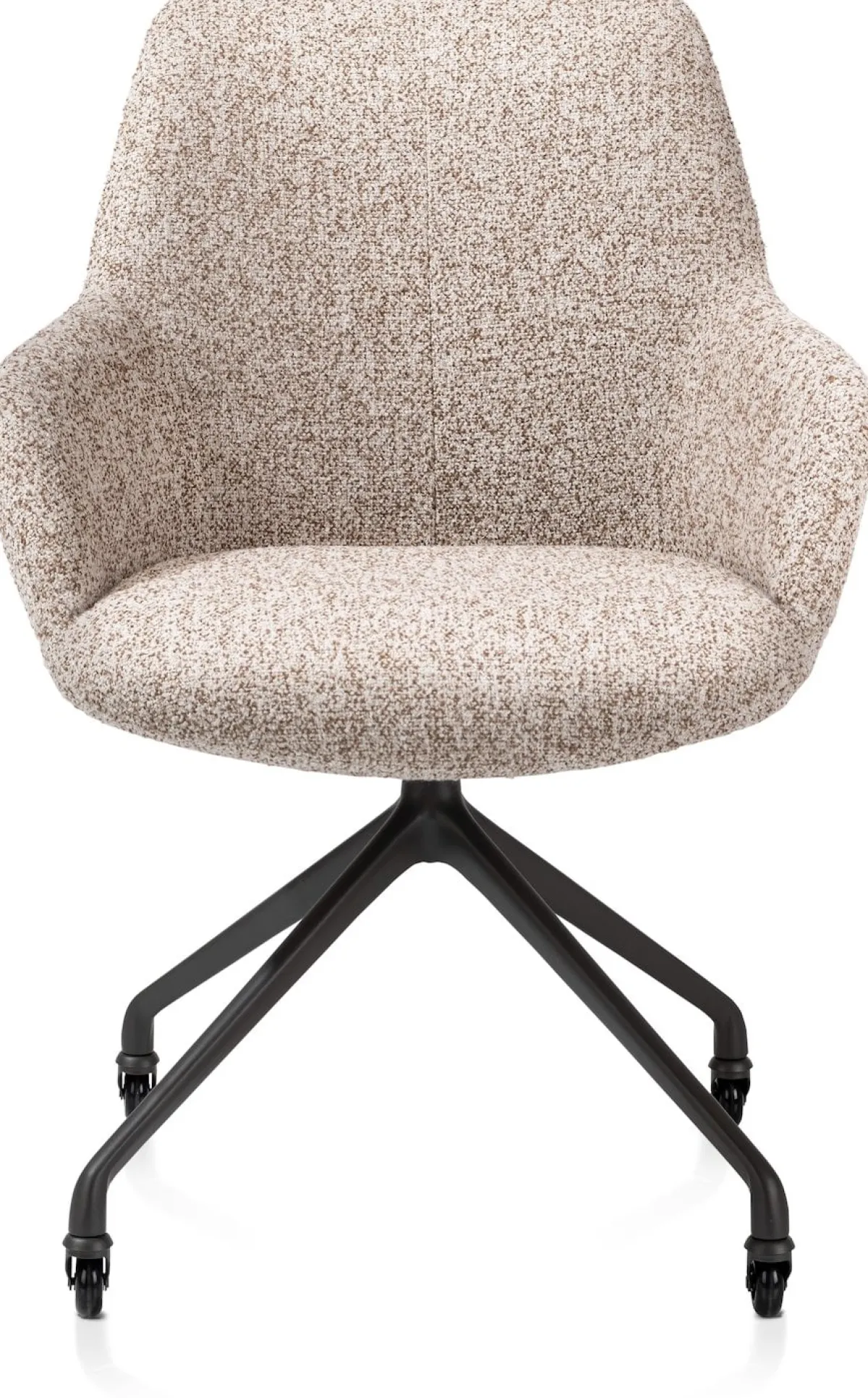 Hot XOOON Mats, armstoel aluminium frame wielen rough off black – stof Luton – koper