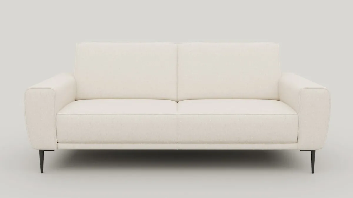 De 2,5-zits bank PUGLIA in stof Vada crème straalt rust en elegantie uit. Het heldere lijnenspel en het luxe metalen designframe geeft de bank een modern silhouet. De standaard pocketvering biedt comfortabel zitcomfort. Sofa PUGLIA is ook verkrijgbaar in de kleuren kiezel en copper. Zo kies je zelf wat bij jouw interieur past.