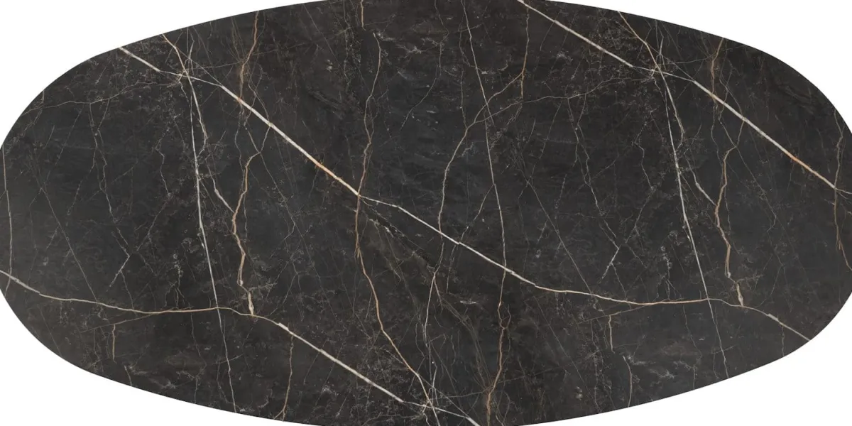 Droom je van een ellipsvormige eetkamertafel? Laat je verrassen door ARABAX van XOOON. Eetkamertafel ARABAX doorbreekt de rechte lijnen in je woonkamer en geeft je interieur een speelse touch. De tafel heeft een afmeting van 210 x 120 en is standaard voorzien van half kegelvormige poten in zwart metaal. ARABAX is geliefd vanwege zijn klassieke karakter met een modern design. Het blad in HPL marmerlook is naast deze prachtige onyx kleur ook verkrijgbaar in warm grijs. Hoe ziet jouw ideale eetkamertafel eruit?
