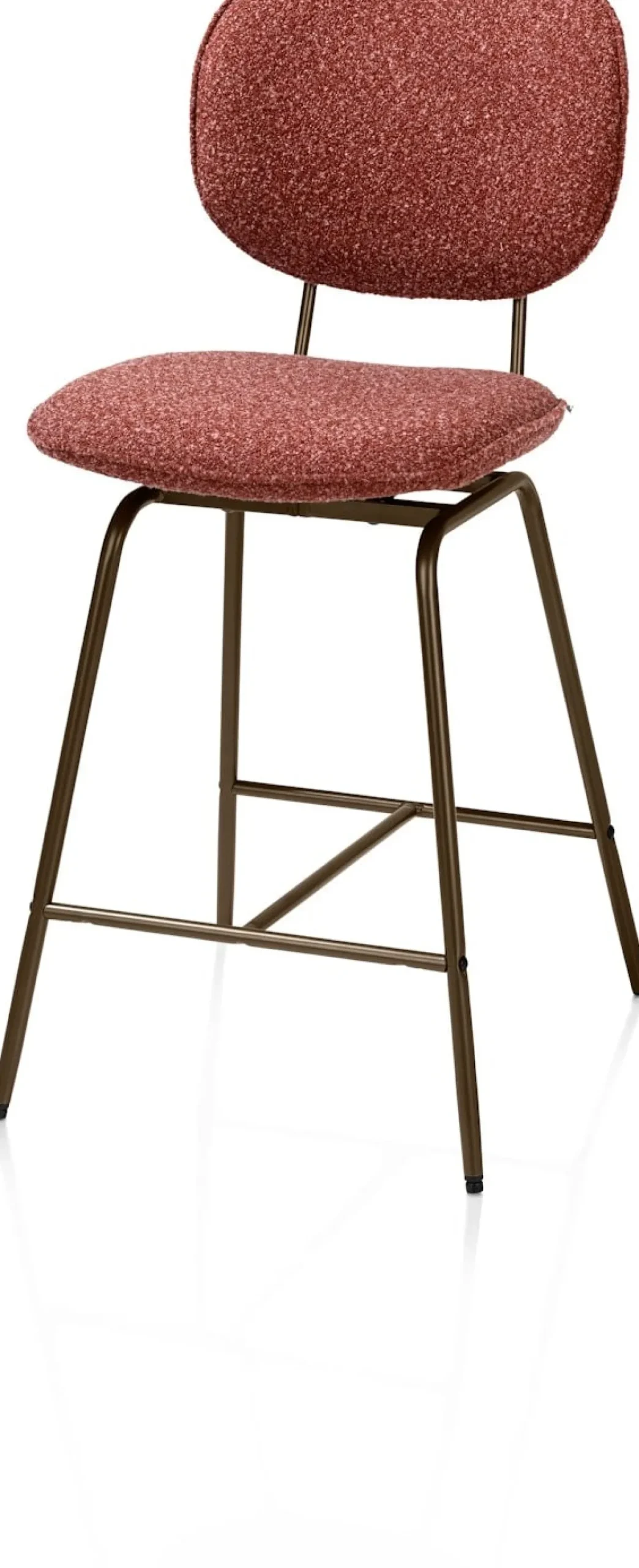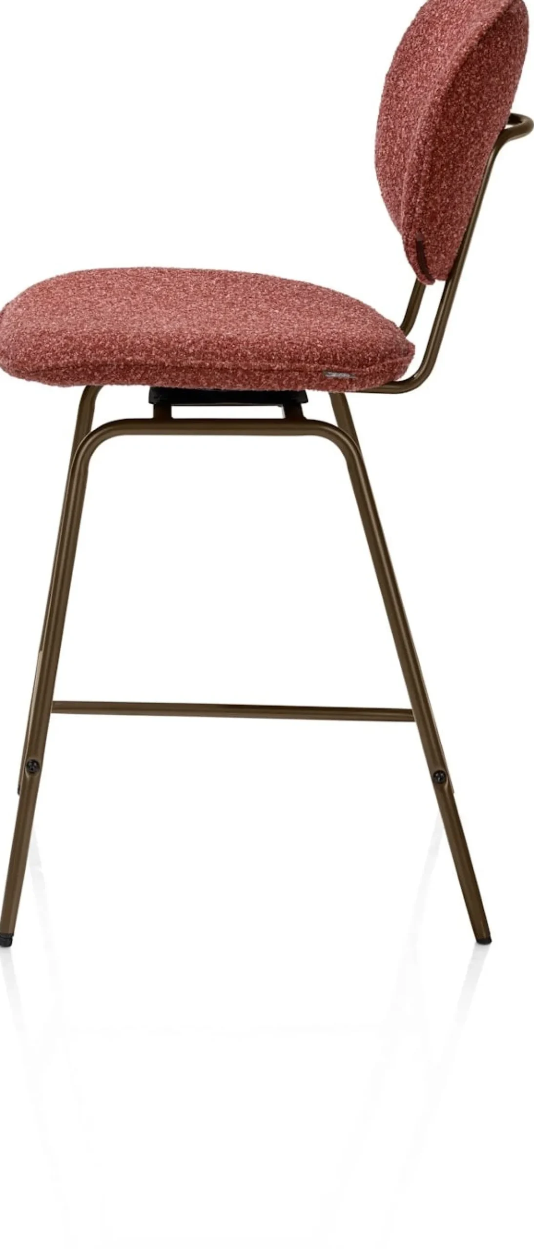 Barstoel LEXI in de kleur koper brengt warmte aan je interieur of keuken. De krachtige kleur, zachte boucléstof Cloudy en het stoere metalen frame in steelbrown maken deze barstoel een opvallende verschijning in huis. Dankzij de 180 graden draaifunctie mét automatische terugdraaifunctie zit je altijd in de juiste positie. Ook verkrijgbaar in de kleuren beige, okergeel en olijfgroen.