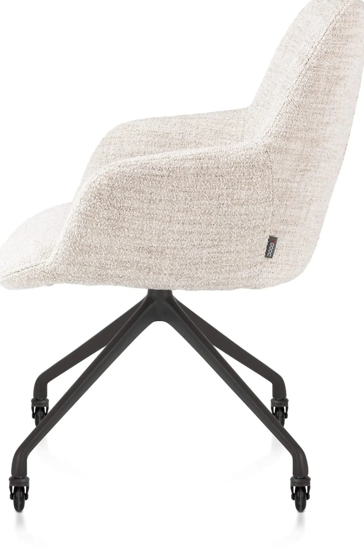 New XOOON Mats, armstoel aluminium frame wielen rough off black – stof Luton – Creme