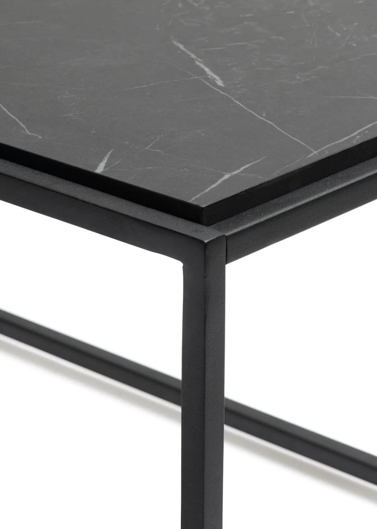 De Stand Up serie van COCOmaison omvat diverse tafeltjes met een omkeerbaar blad, waarmee je de uitstraling van de tafel kunt veranderen door simpelweg het blad om te draaien. Wat deze salontafel extra speciaal maakt, is dat hij door zijn afmeting van 40 cm breedte, 100 cm diepte en 35 cm hoogte ook nog eens perfect tussen verschillende delen van een elementenbank past. Op die manier kun je je bank dus uitbreiden met een tussentafel voor een leuk effect. Deze variant heeft een zwart metalen frame en een marmerlook blad in zwart of wit, maar er bestaat ook nog een andere kleurcombinatie. Ook handig: Het blad van HPL is onderhoudsvriendelijk.