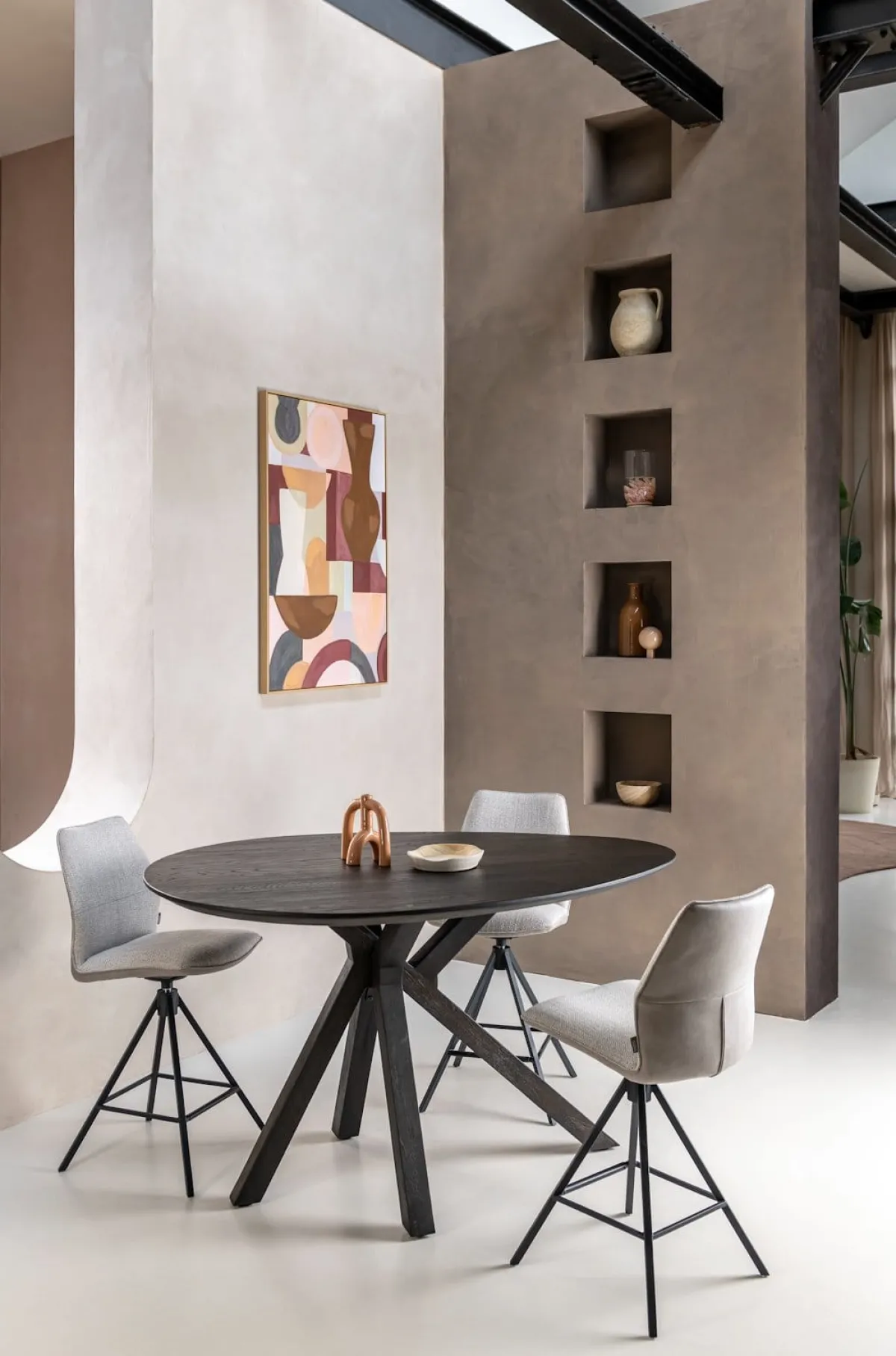 Droom je van een stoer eetkamertafel met een natuurlijke uitstraling? Laat je verrassen door deze prachtige eetkamertafel COSENZA van 160 x 115 cm. De eetkamertafel is vervaardigd van massief eikenhout en heeft zichtbare houtnerven en knoesten. COSENZA heeft een ei-vormig blad en we bieden keuze uit 2 kleuren: onyx en naturel. Opvallend aan COSENZA is de asymmetrische kruispoot van massief eiken. Deze stoere eetkamertafel is verkrijgbaar in verschillende afmetingen, vormen en hoogtes. Tip: kijk ook eens naar de COSENZA bartafel!