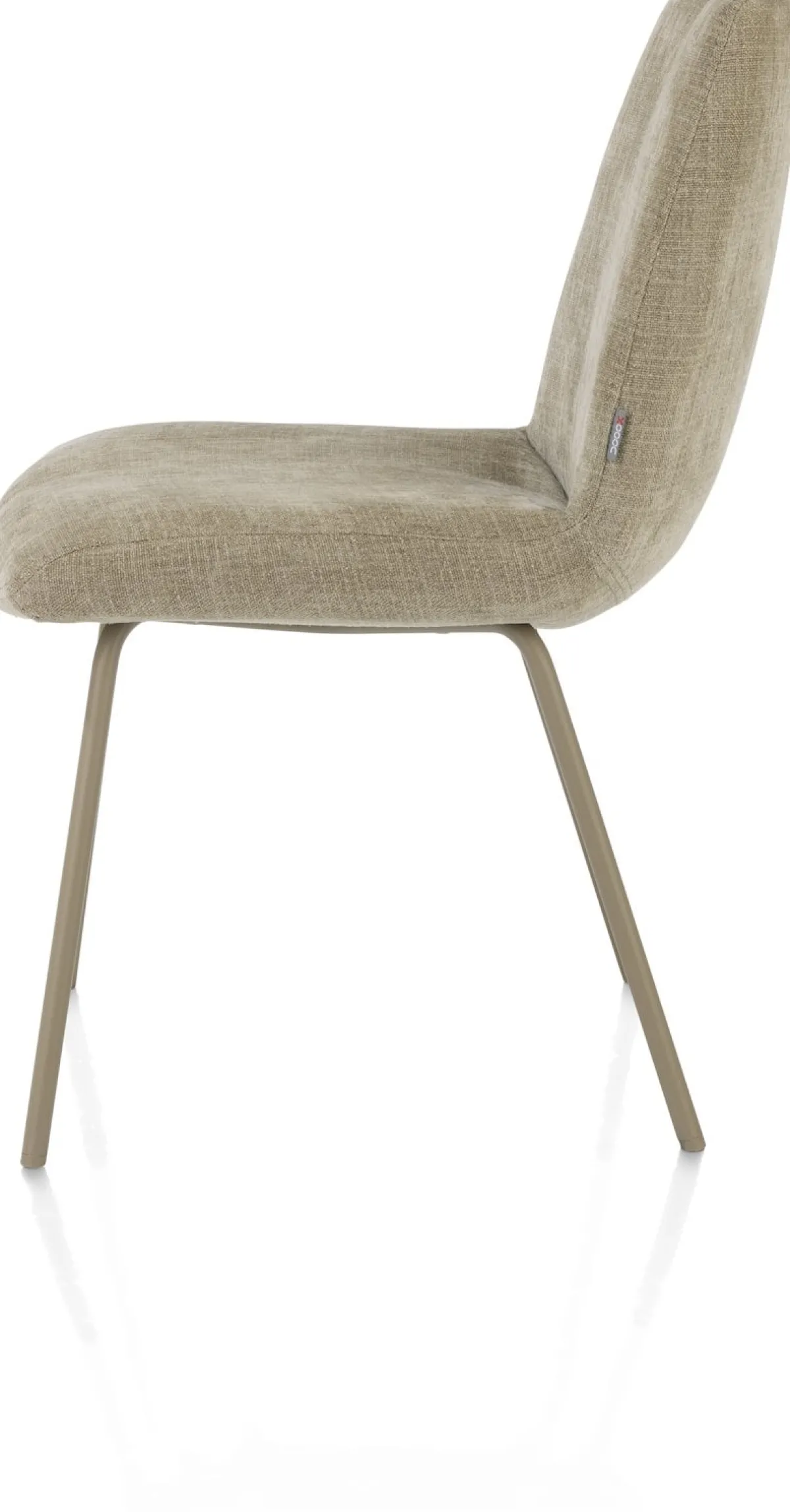 Is het geen plaatje, deze eetkamerstoel FILIPO in de kleur olijf? FILIPO staat op een rank groen metalen onderstel, wat zorgt voor een mooi ton-sur-ton effect. De eetkamerstoel is bekleed met stof Cadiz en ook verkrijgbaar in de kleuren crème en koper. Ga je voor één tint of mix en match je de verschillende kleuren voor een speelse look?