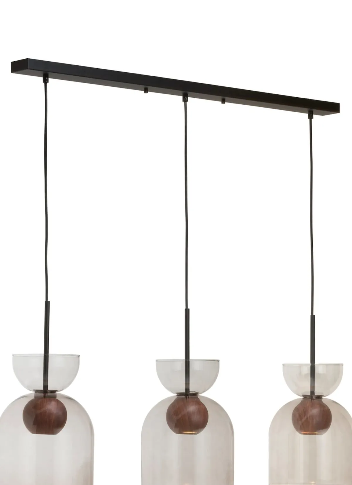 Hanglamp Skylar is een stijlvolle hanglamp met drie lampen. Door de mooie balans tussen de materialen in glas en metaal past Skylar perfect in elk interieur. De lamp is afgewerkt met bollen in houtlook en 3 moderne lampenkappen in antraciet. De hanglamp is in hoogte verstelbaar en kan opgehangen worden variërend van 120 cm tot 160 cm. En door de passende externe dimmer kan het licht worden aangepast naar de gewenste sfeer. De lamp is ook verkrijgbaar als wand-, tafel- of vloerlamp. (Lichtbron: 3* GU10 10W LED) (Let op: lichtbron niet inbegrepen)