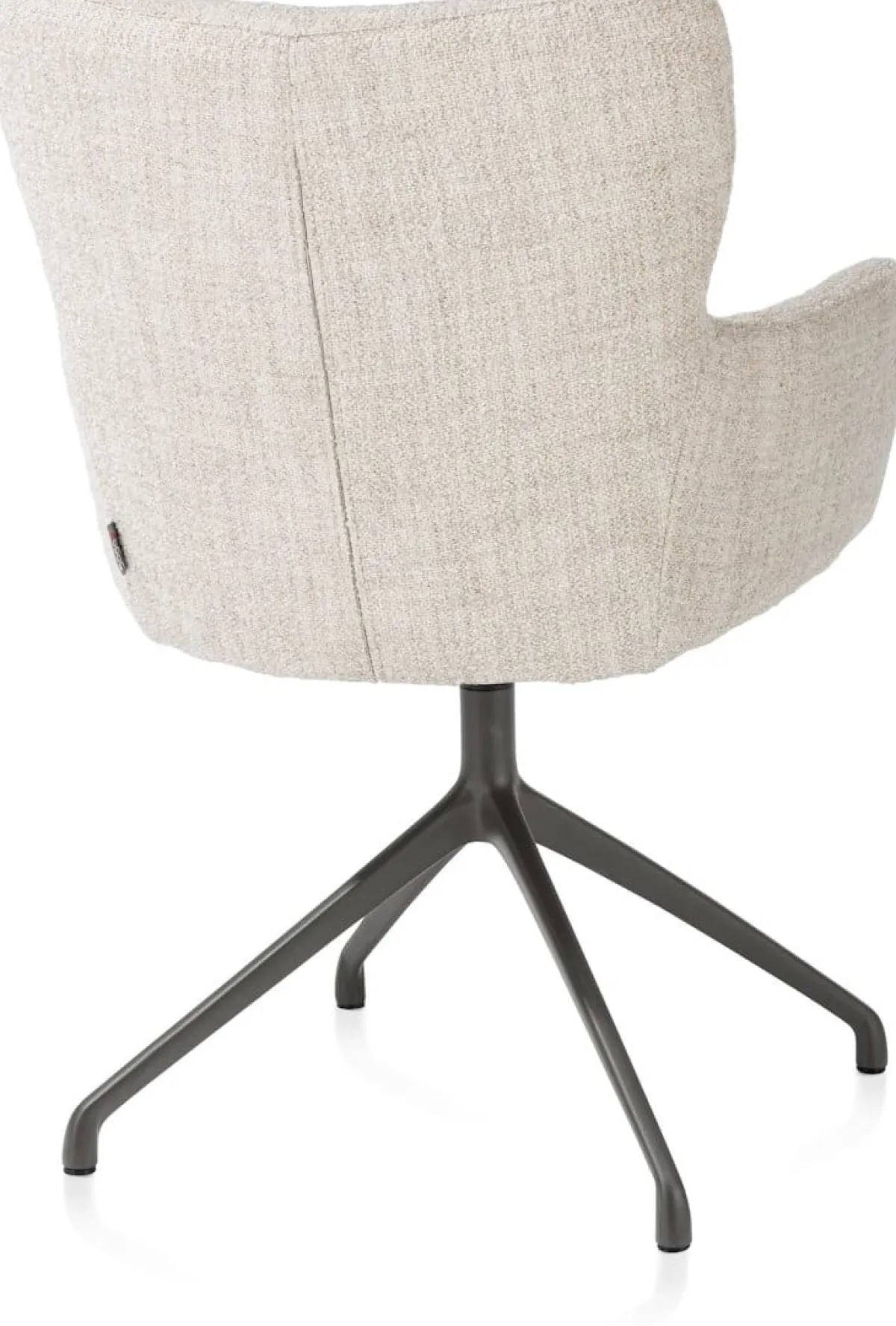 Armstoel SAGE in crèmekleur is een stijlvolle en comfortabele toevoeging aan je eethoek of werkplek. De zachte, bouclé-achtige stof Luton voelt heerlijk aan en geeft de stoel een warme, aaibare uitstraling. De ruime zitting en licht gebogen rug zorgen voor een fijne, ontspannen zit. Dankzij het draaibare onderstel in graphiet draai je makkelijk mee met het gesprek. Deze armstoel is er ook in andere kleuren en onderstellen; neem zeker een kijkje!