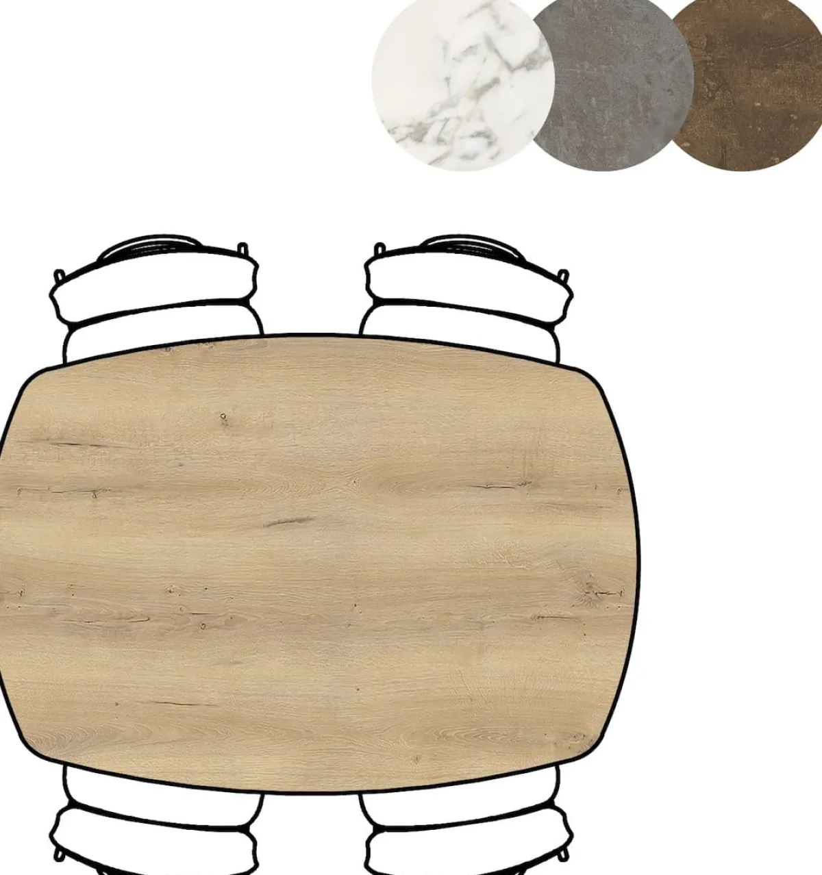 blad in Primo Laminato (HPL) – eikenlook – onderstel in metaal, zwart