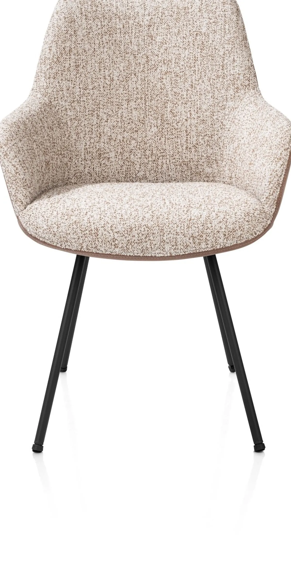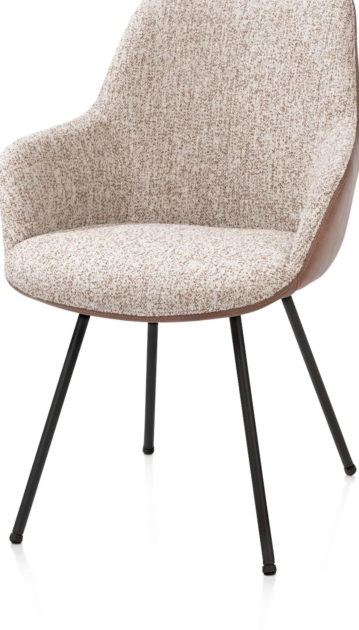 Ben je op zoek naar een trendy armstoel met een ronde vormgeving? Dan is armstoel MATS de ideale stoel voor jou. MATS is bekleed met een combi van stof Pala in de kleur cognac + stof Luton in het koper. MATS is een stoel waarin je uren kunt tafelen, dankzij de comfortabele armleuningen en heerlijke zit. Hij staat op een rough off black frame en je schuift hem makkelijk onder de tafel. Kijk ook zeker eens naar de andere uitvoeringen waarin hij verkrijgbaar is qua kleur, bekleding en onderstel.