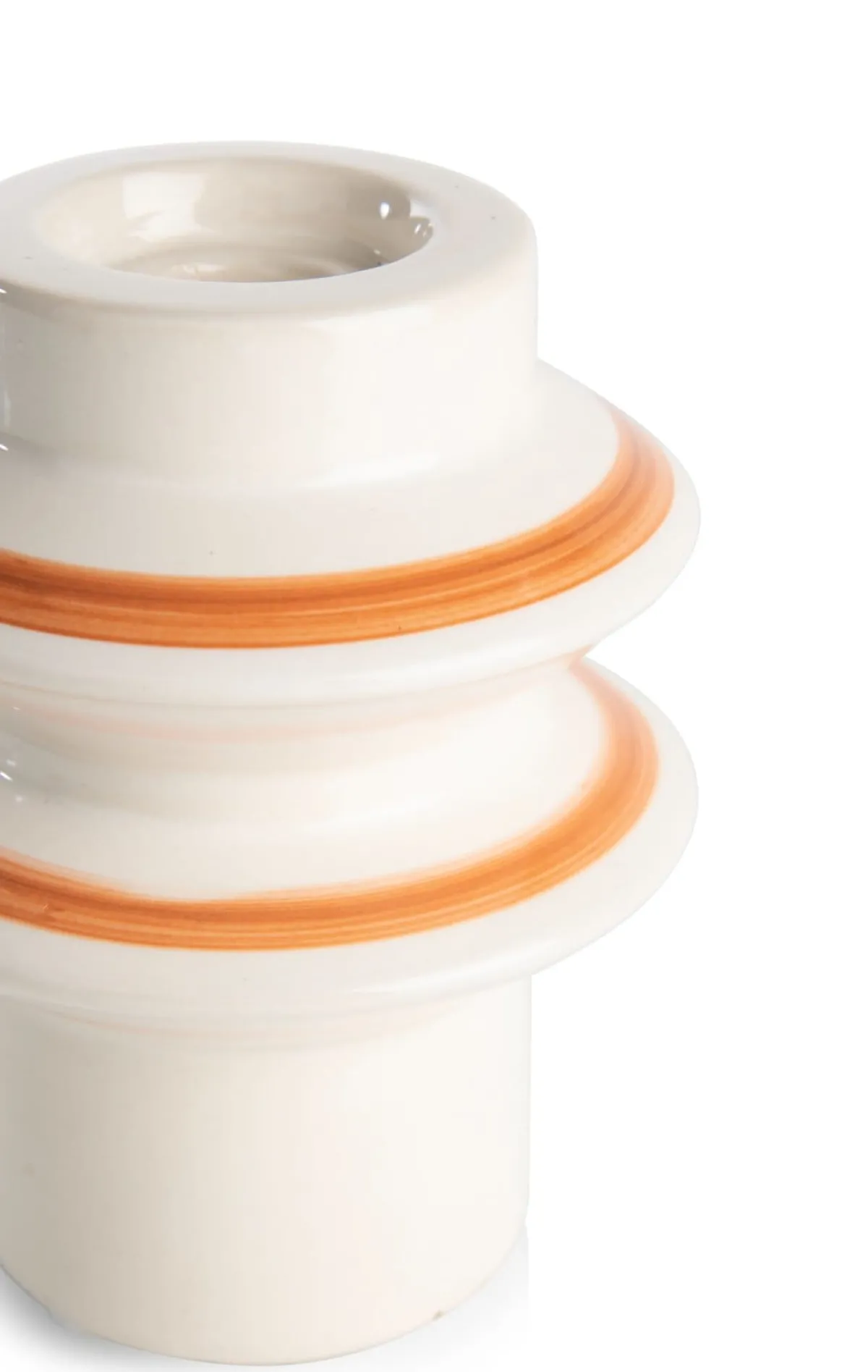 Oranje is terug in het interieur, maar veel subtieler dan in de jaren ’70. De oogverblindende compleet oranje muren en meubels hebben plaatsgemaakt voor zachte kleuraccenten. De NORA serie van COCOmaison is hiervan een goed voorbeeld. De kandelaar heeft een hoogte van 15 cm, is crème-kleurig en versierd met handgeschilderde oranje ringen. Hij heeft een vriendelijke vorm en staat leuk op elke tafel of kast. En wat helemaal leuk is: er past zowel een dinerkaars als een stompkaars in. Wanneer je dan ook nog af en toe kiest voor een andere kleur kaars, ziet je kandelaar er telkens weer anders uit.