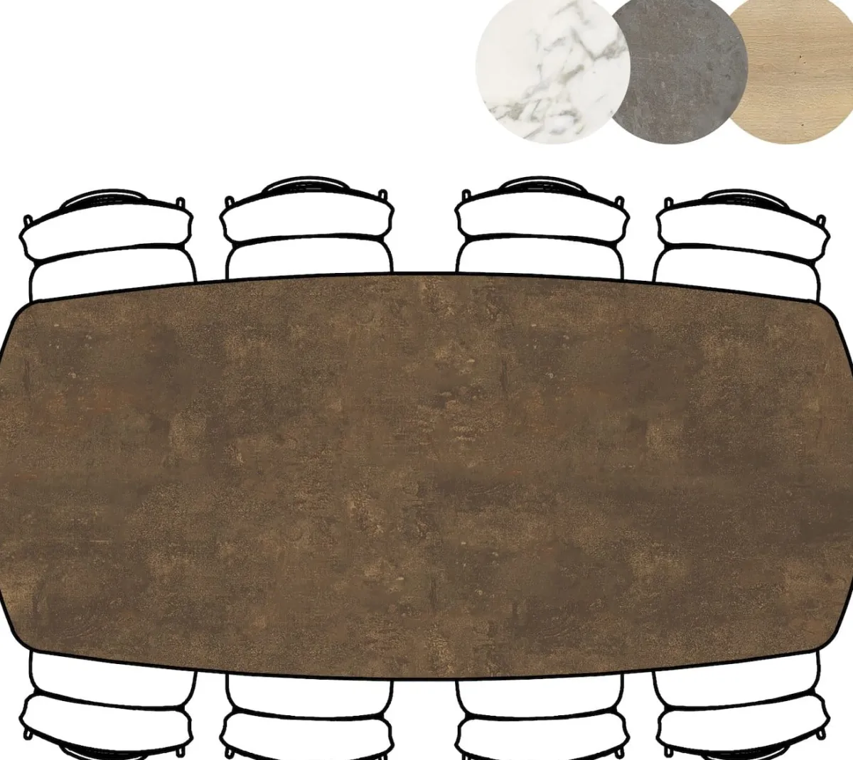 De woontrend van nu: ovale eetkamertafels! Dit stijlvolle exemplaar heeft een afmeting van 240 x 110 cm, en biedt ruimte voor 8 stoelen. Deze eetkamertafel MASURA pronkt op een centrale poot wat ideaal is qua beenruimte. Het tafelblad is gemaakt van hoogwaardig HPL en is naast deze kleur verkrijgbaar in nog 3 andere kleuren.