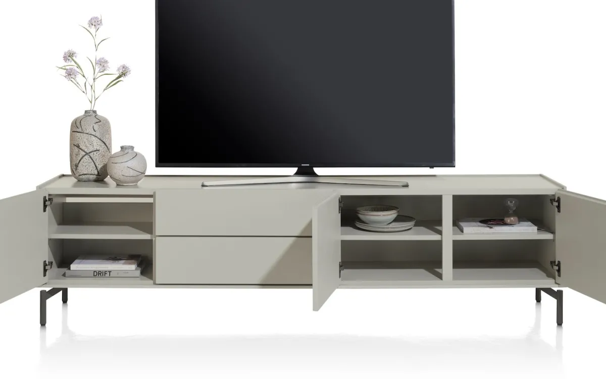 Sale XOOON NOON lowboard 210 cm – 3-deuren + 2-laden – zijdegrijs