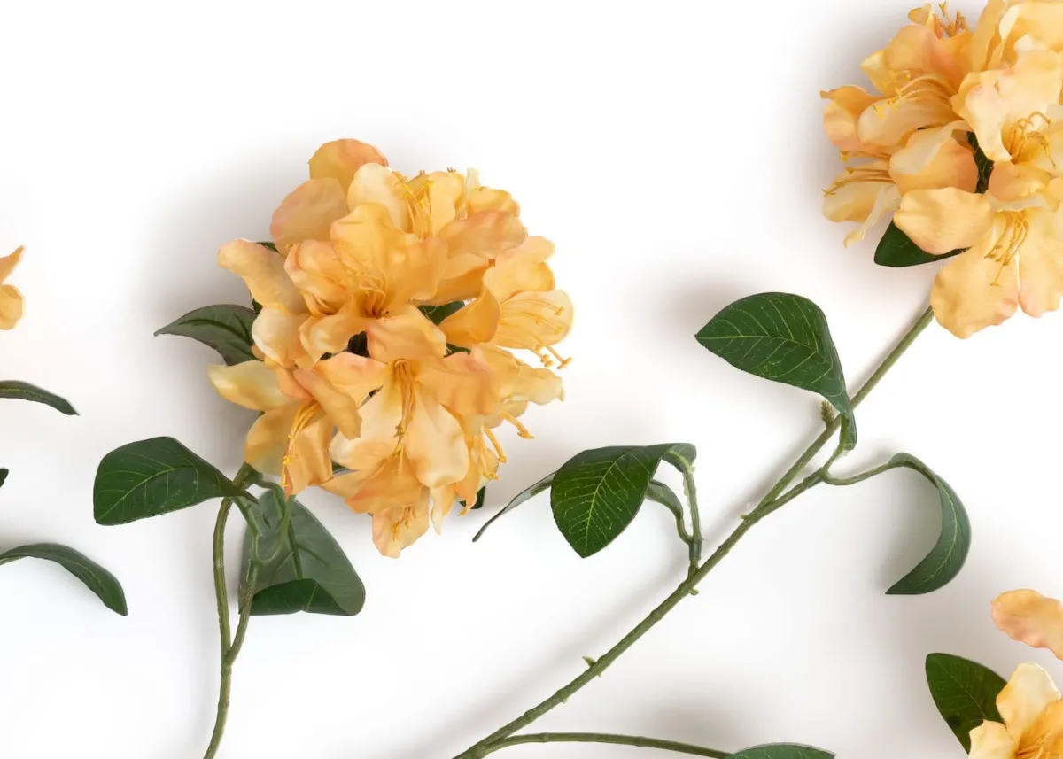 De Rhododendronstruik staan bekend om haar uitbundige en kleurrijke bloemen. Deze Rhododendron spray springt er dan ook helemaal uit met haar prachtige gele kleur. De tak bestaat uit meerdere bloemen en is in totaal zo’n 118 cm lang. Combineer De Rhododendron spray met wat andere bloemen uit de collectie van kunstbloemen en -planten van COCOmaison om een mooie zomerse bos samen te stellen die nooit uitgebloeid is!