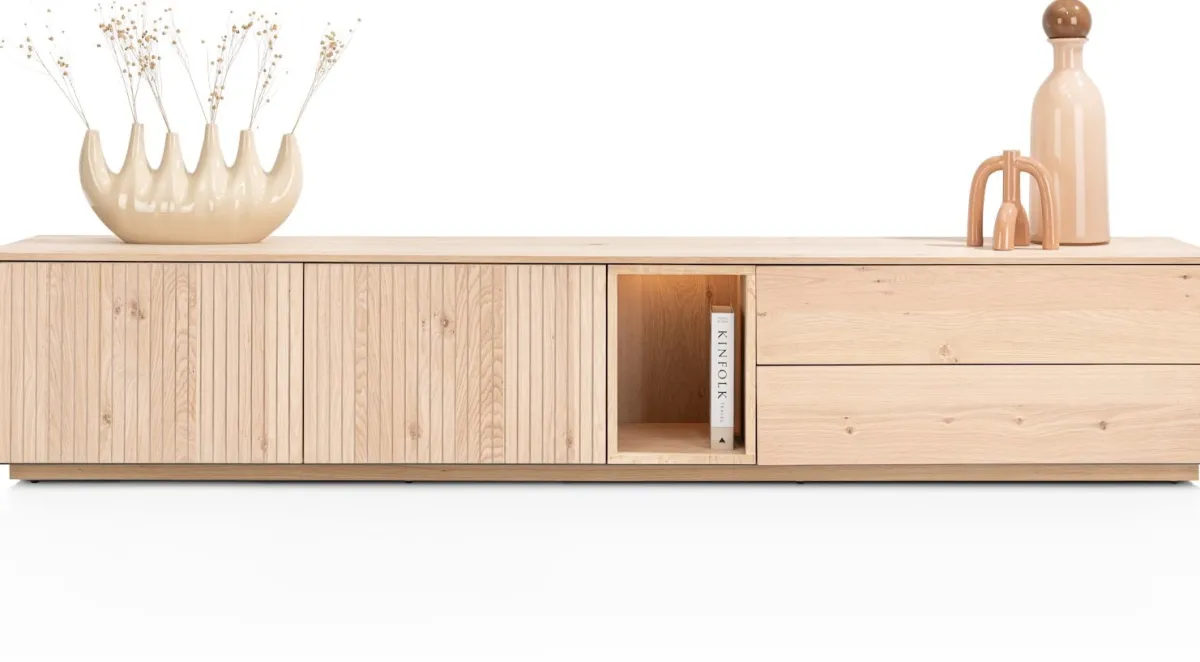 Sale XOOON Trenton, lowboard 240 cm – 2-deuren + 2-laden + 1-niche – natural