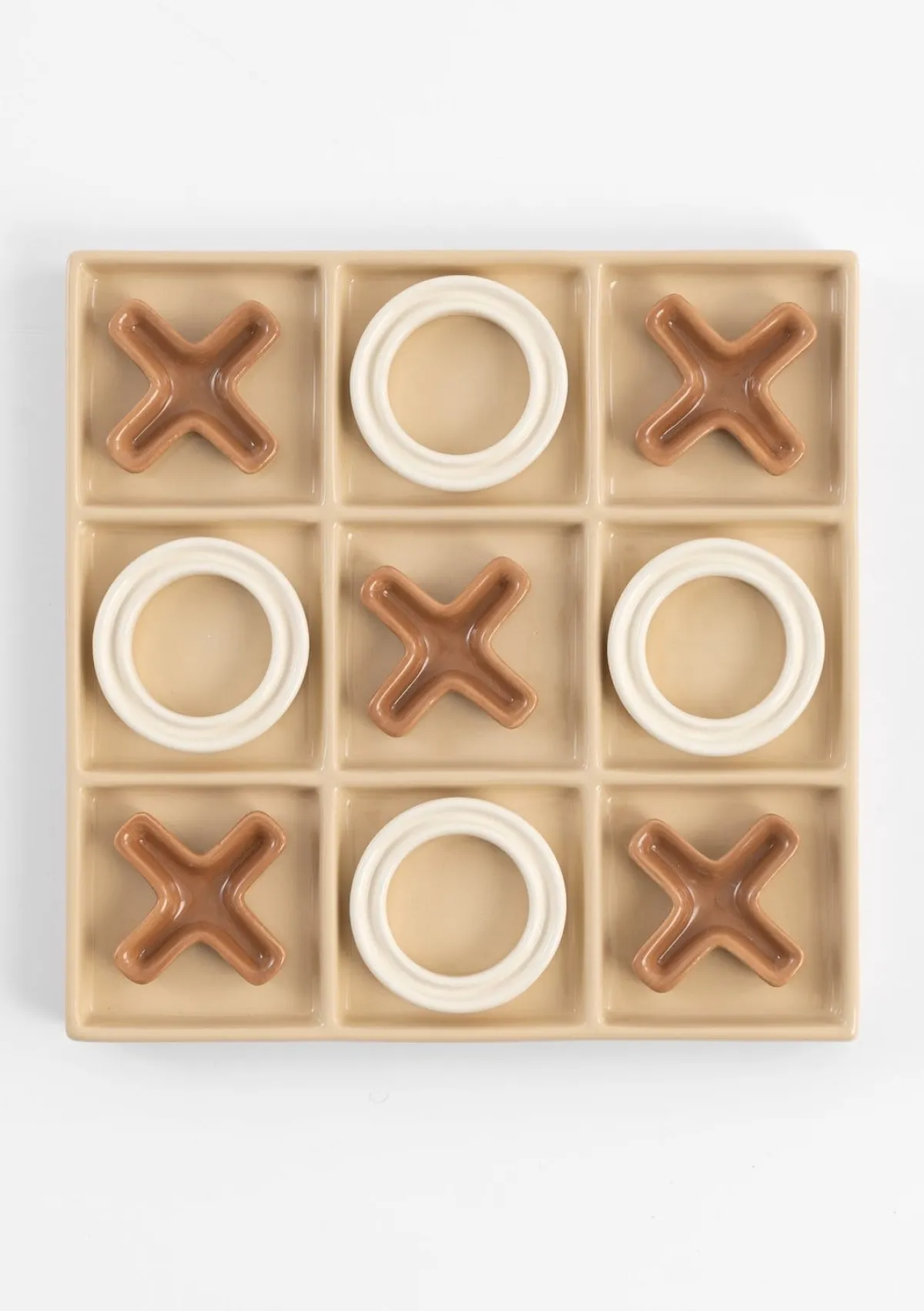 Breng een speelse touch in je interieur met het Oxo speelbord van COCOmaison. Dit unieke object, met een afmeting van 30 x 30 cm, is gemaakt van keramiek en heeft een prachtige multicolor afwerking die direct de aandacht trekt. Het Oxo speelbord is vormgegeven als een boter-kaas-en-eieren spel, wat het niet alleen leuk maakt als decoratie, maar ook functioneel als speelbord. Plaats het op een salontafel, in een open kast of op een dressoir en geniet van de vrolijke uitstraling die het aan je ruimte geeft. Of je nu een gezellige sfeer wilt creëren tijdens een spelavond of een stijlvol accent wilt toevoegen aan je interieur, het Oxo speelbord van COCOmaison is de perfecte keuze.