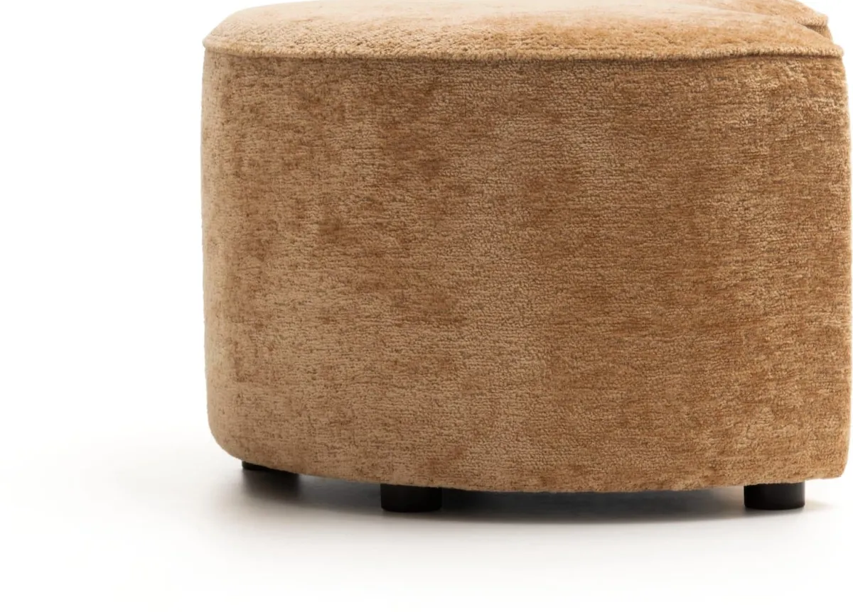 De poefs, het bankje en de fauteuil uit de Roan-serie van COCOmaison zijn door hun vorm perfect met elkaar te combineren. Alle items zijn bekleed met een trendy stof en zijn verkrijgbaar in twee kleuren. Deze okerkleurige poef in de vorm van een halve maan kan perfect aan één van de andere elementen geschoven worden, waardoor je een groter zithoekje kunt creëren. De poef is gemaakt van 40% multiplex, 30% schuim en 30% stof. Een handig detail: er worden twee sets poten meegeleverd, waardoor je de fauteuil op een standaard zithoogte kunt plaatsen, maar ook op een hoogte die geschikt is voor gebruik aan een eettafel. Bij elkaar heeft deze poef een diameter van 59/71 cm en een hoogte van 44 cm.