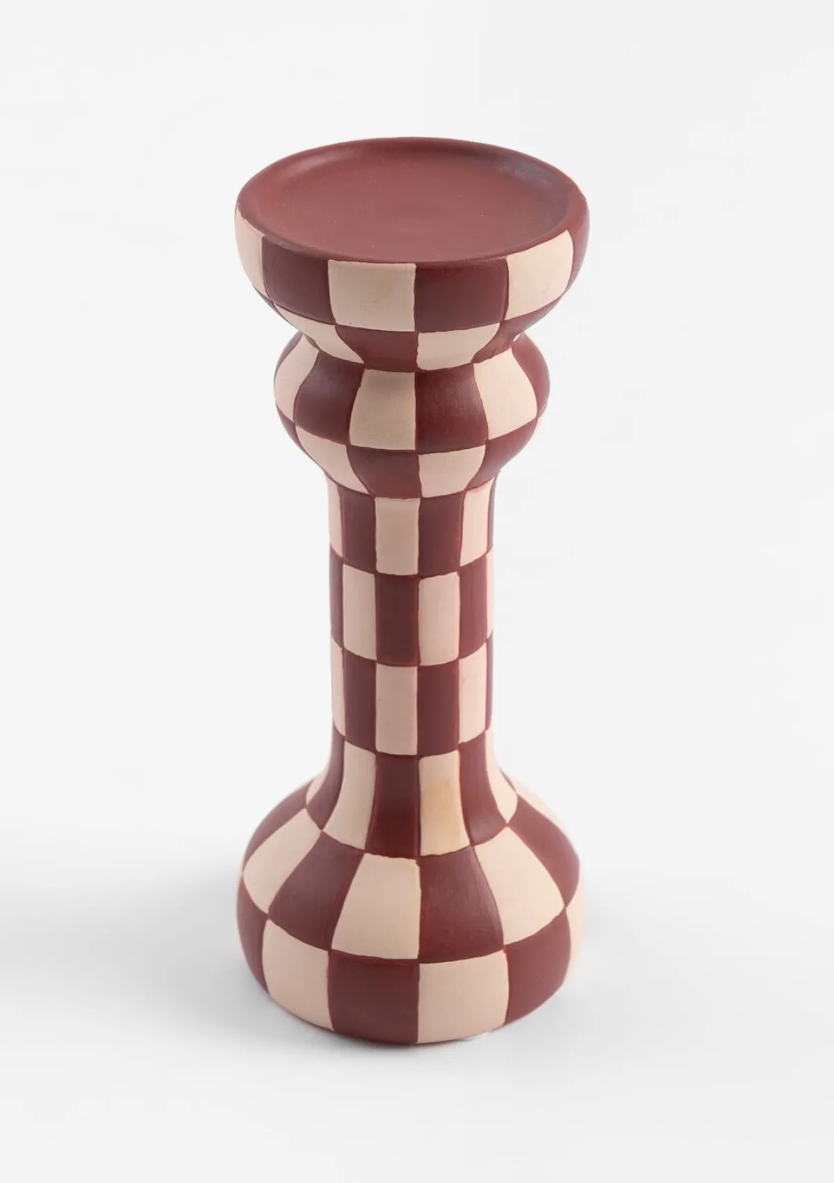 Voeg een vleugje klassieke charme toe aan je interieur met de Jacob kandelaar van COCOmaison. Deze elegante kandelaar is 24 cm hoog en is gemaakt van keramiek. Deze kandelaar heeft een verfijnde matte finish in bordeauxrood met wit. Het blokjesmotief geeft de kandelaar een subtiele textuur en een unieke uitstraling. Dankzij de klassieke vorm past de Jacob kandelaar moeiteloos in zowel moderne als traditionele interieurs. Combineer de Jacob kandelaar met de bijpassende vaas van COCOmaison voor een harmonieus en stijlvol geheel.