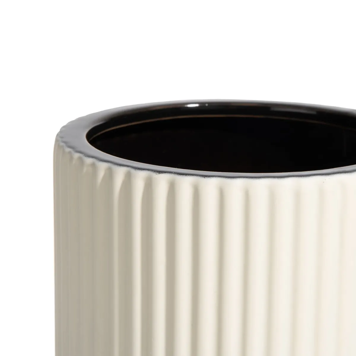 Vaas HALEY uit de collectie van COCOmaison is een witte vaas met een basic vormgeving. De vaas is 24 cm hoog en gemaakt van keramiek. Naturel tinten in huis zorgen voor een eenvoudige basis. Slim, want zo is er alle ruimte voor jouw persoonlijkheid! Deze witte keramieken vaas HALEY heeft een zwarte binnenkant en is waterbestendig. De lijnenstructuur aan de buitenkant geeft de vaas een speciale touch. HALEY is in twee maten verkrijgbaar. Ga je voor deze variant van 24 cm hoog of shop je hem een maatje groter?