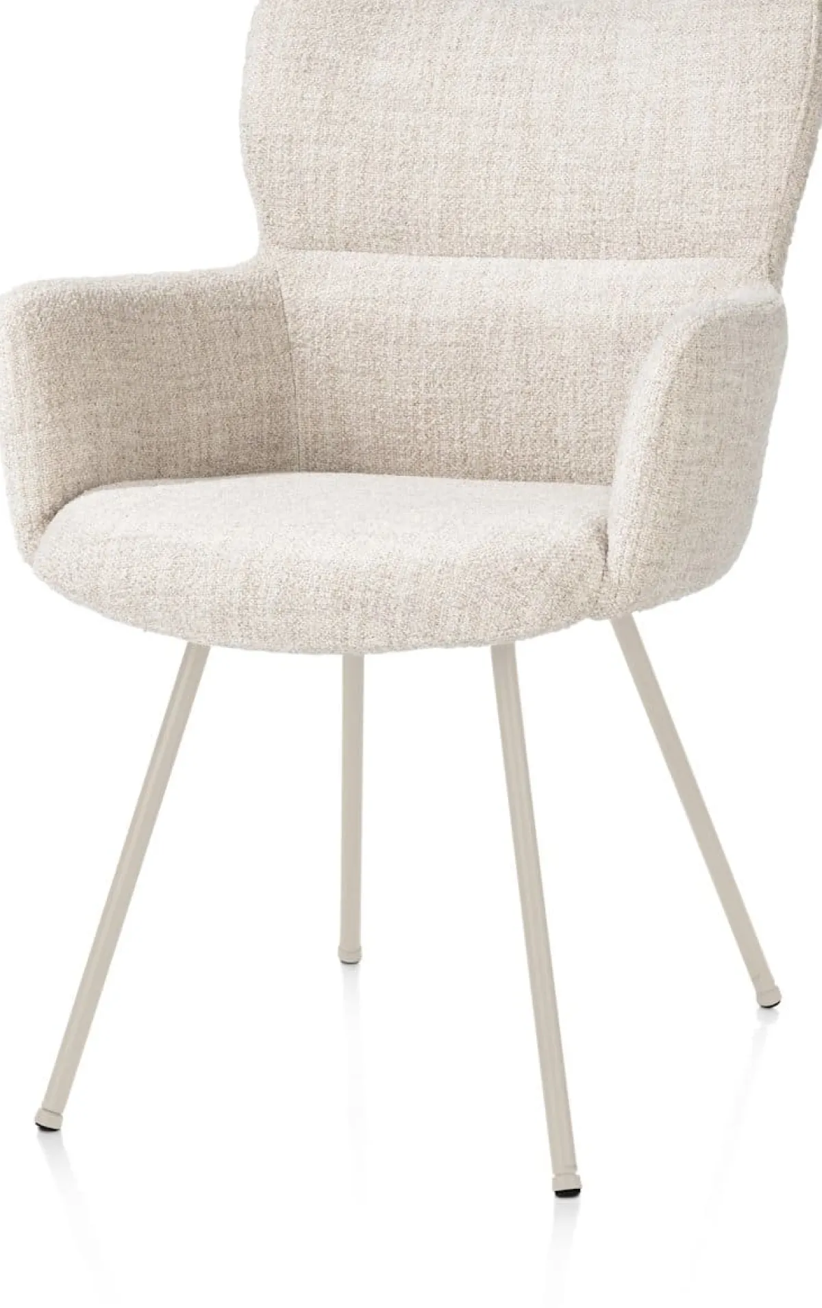 De SAGE armstoel in volledig crèmekleurige uitvoering straalt rust en elegantie uit. De stoel is bekleed met stof Luton, een stof met een hoge aaibaarheidsfactor. Dankzij de afgeronde rugleuning, geïntegreerde armleuningen en ruime zitting geniet je van optimaal gemak, perfect voor lange diners of ontspannen momenten aan tafel. Het 4-poots onderstel in dezelfde crèmekleur geeft de stoel een frisse, ton-sur-ton look die moeiteloos past in zowel moderne als klassieke interieurs. Armstoel SAGE is verkrijgbaar in diverse kleuren en uitvoeringen, zodat je jouw eetkamer een persoonlijke en stijlvolle uitstraling kunt geven.