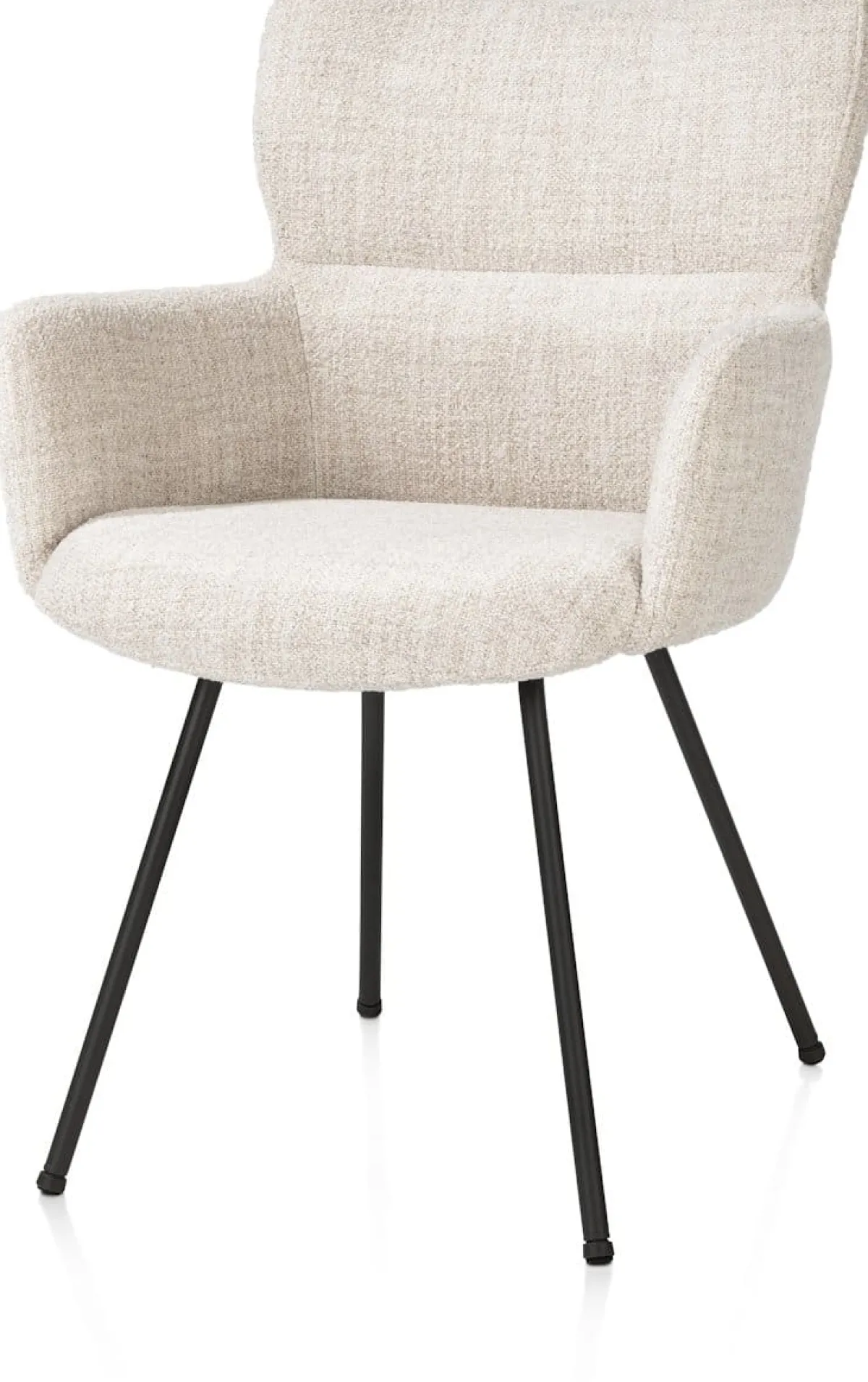 Deze armstoel SAGE in crèmekleur combineert comfort met stijlvol design. Bekleed met stof Luton, een bouclé‑achtige meubelstof met een zachte, aaibare structuur, biedt deze stoel een luxe zitervaring. De vier ranke poten in rough off black zorgen voor een stoer accent en een stabiele basis. Deze moderne armstoel past perfect aan de eettafel of als sfeervolle toevoeging in je interieur. Kijk ook eens naar de andere varianten van armstoel SAGE.