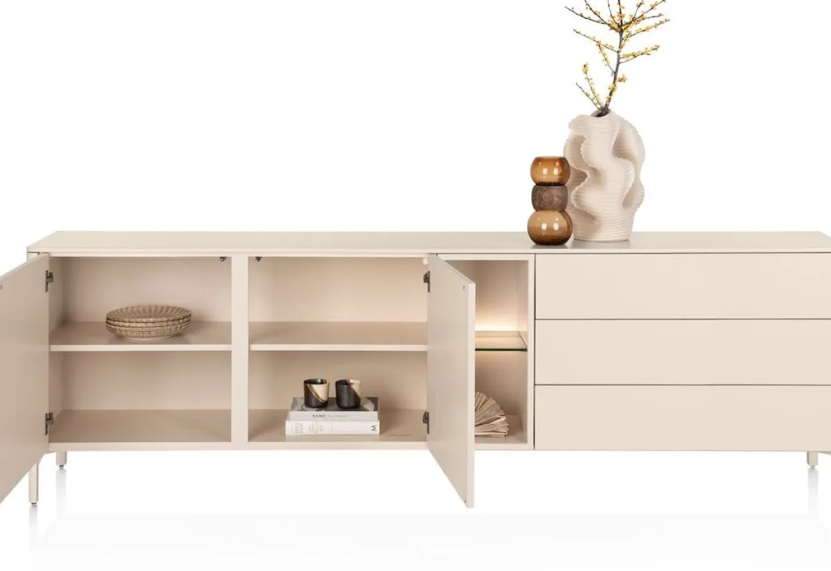 Best XOOON Trentino, Dressoir 240 cm. – 2-deuren + 3-laden + 2-niches – Creme
