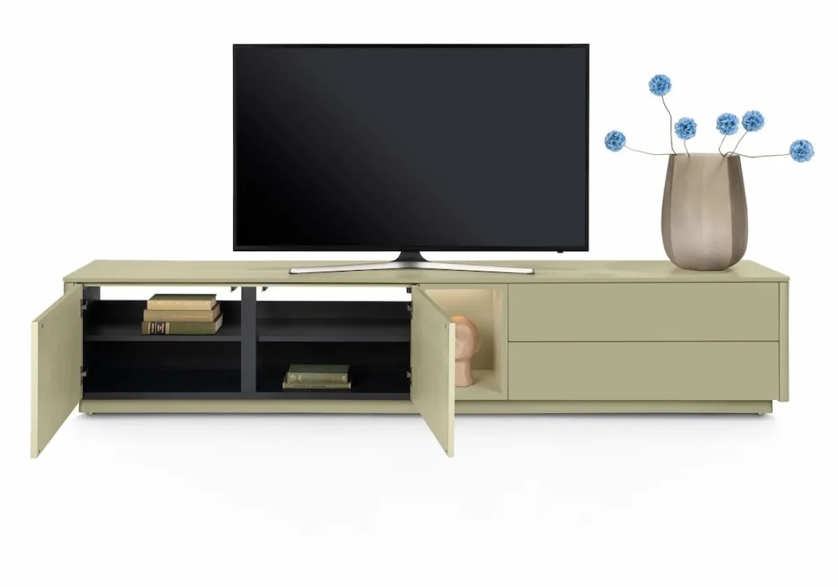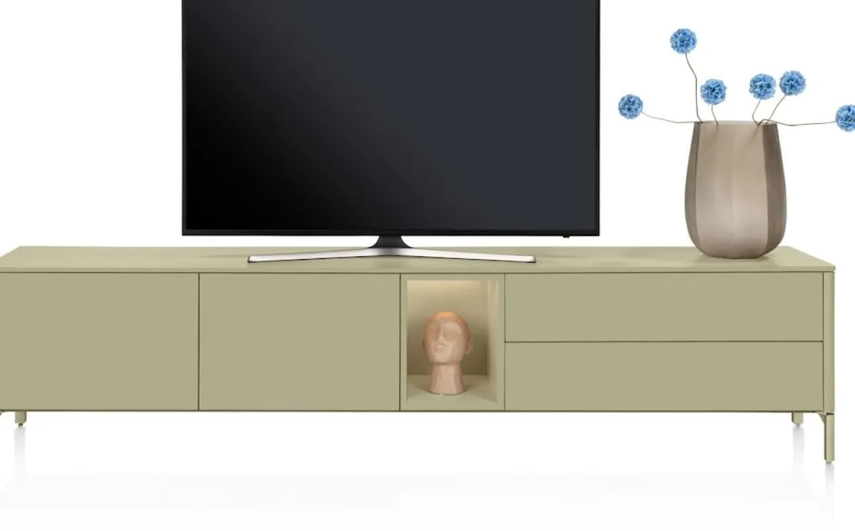 Best XOOON Trentino, Lowboard 240 cm. – 2-deuren + 2-laden + 1-niche – mdf gelakt – Olijf