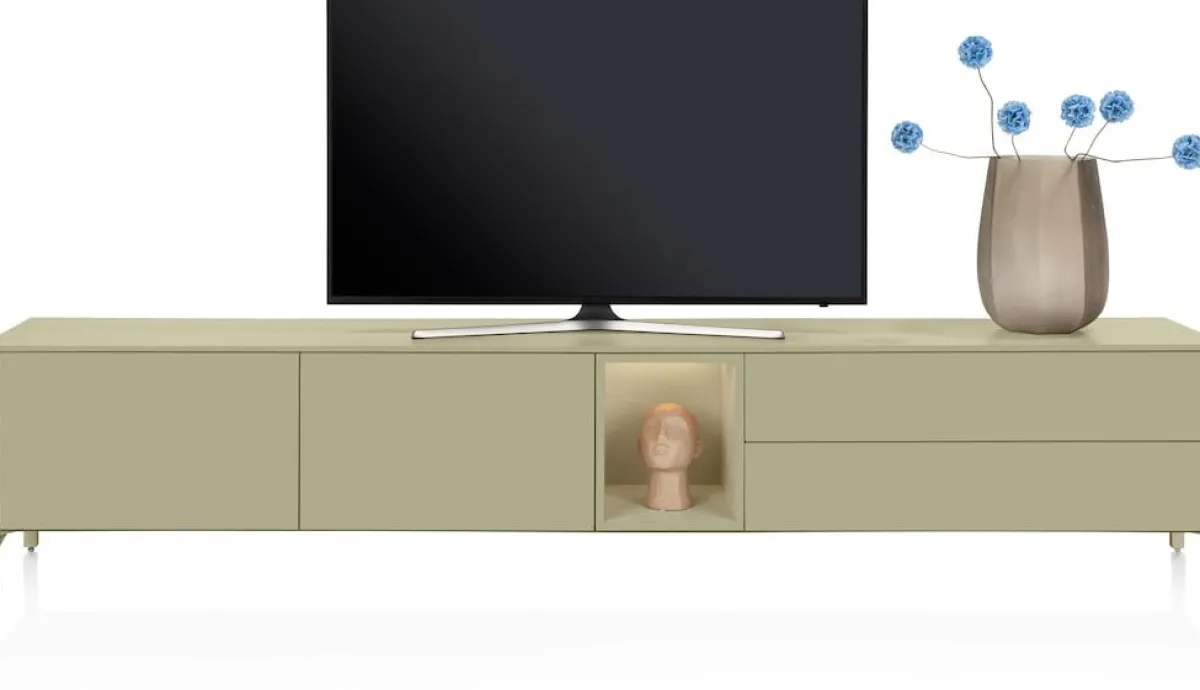 Best XOOON Trentino, Lowboard 270 cm. – 2-deuren + 2-laden + 1-niche – mdf gelakt – Olijf