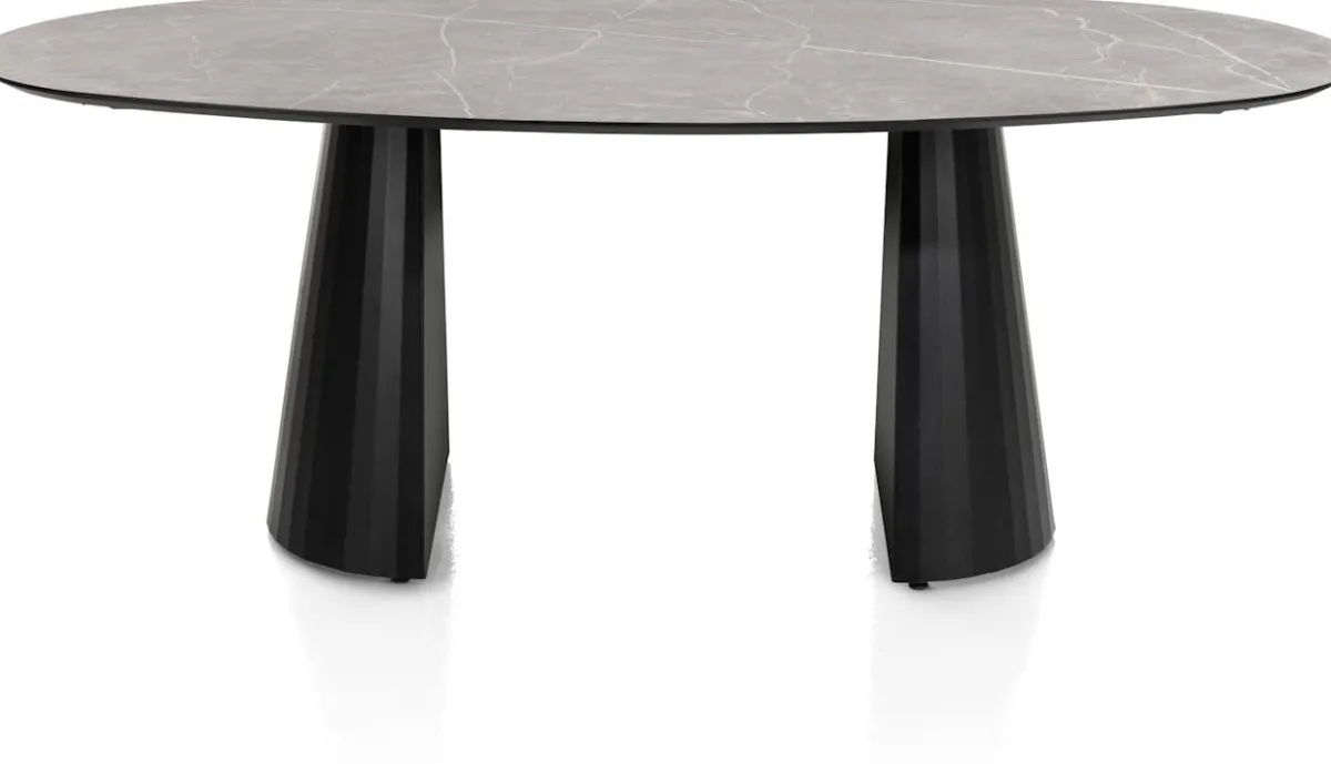 Ben je op zoek naar een ellipsvormige eetkamertafel voor een speelse touch in je interieur? Kijk dan eens naar tafel ARABAX uit de collectie van XOOON. ARABAX is een klassieke tafel in een modern jasje. Het ellipsvormige tafelblad in HPL marmerlook heeft een afmeting van 210 x 120 cm en pronkt op een kegelvormig onderstel in zwart metaal. De speelse uitstraling van ARABAX doorbreekt de rechte lijnen in je interieur. Voor het blad maak je een keuze uit twee kleuren: warm grijs of stijlvol onyx. Bepaal zelf de look van jouw eetkamertafel!