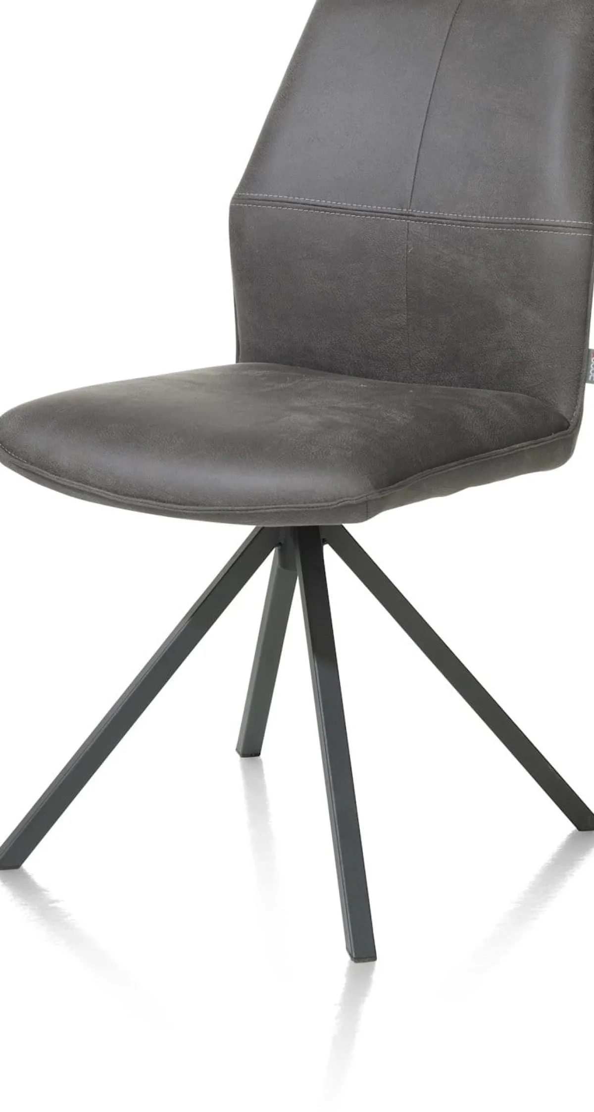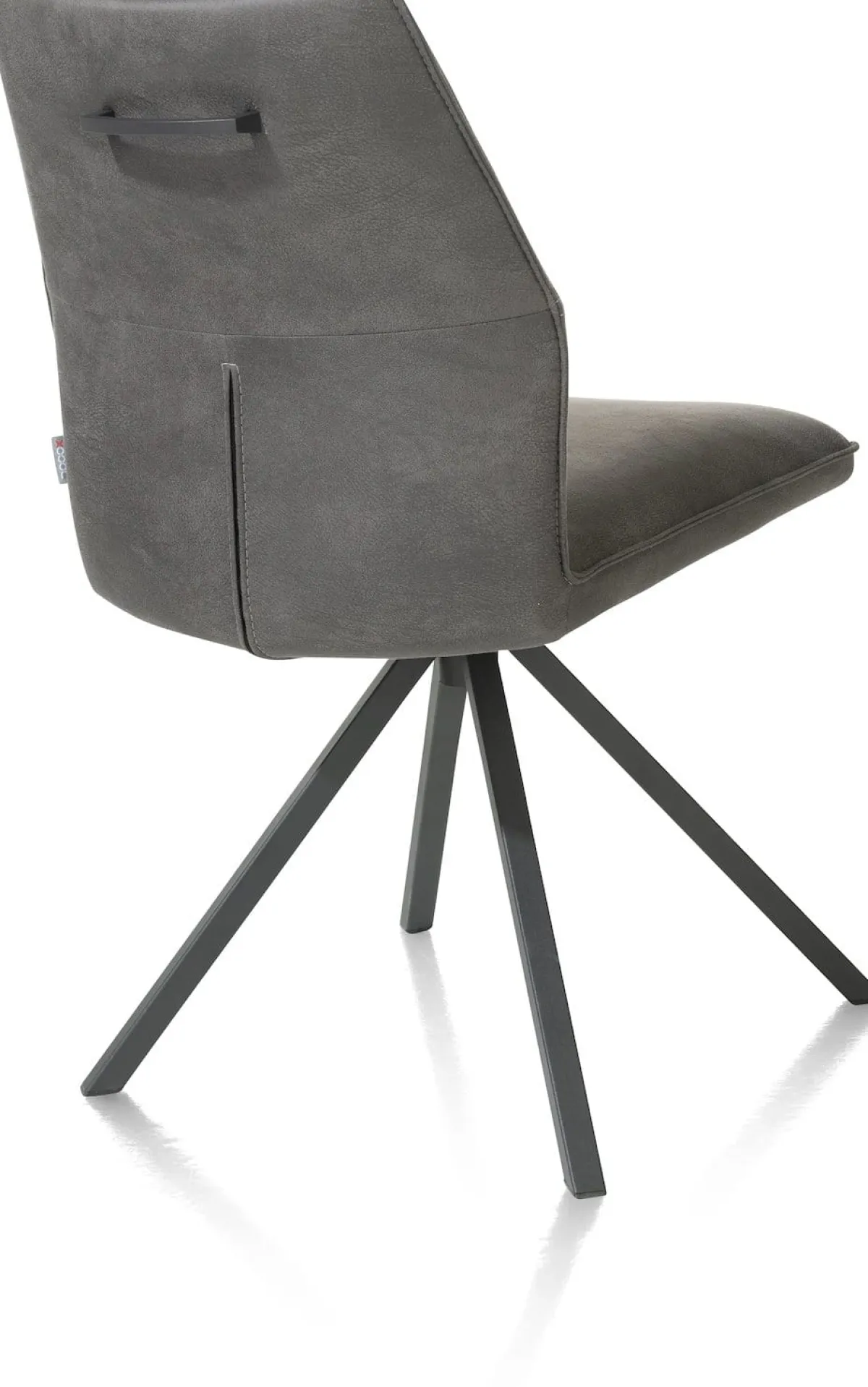 Ontdek eetkamerstoel FRANKY, jouw nieuwe, stoere en moderne eetkamerstoel. Personaliseer hem helemaal naar jouw smaak met onze stoffen en kleuren; of je nu gaat voor uni of een duo. Neem bijvoorbeeld deze stoere kleur off black! FRANKY staat op een centrale 4-poot van zwart metaal en is volledig draaibaar. Dankzij de handige handgreep op de rugleuning kun je hem eenvoudig verplaatsen en draaien, perfect voor elke situatie! FRANKY is ook beschikbaar met een vast frame en als comfortabele armstoel. Welke uitvoering kies jij?