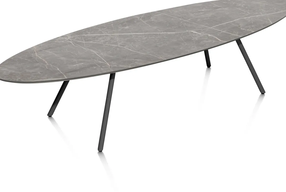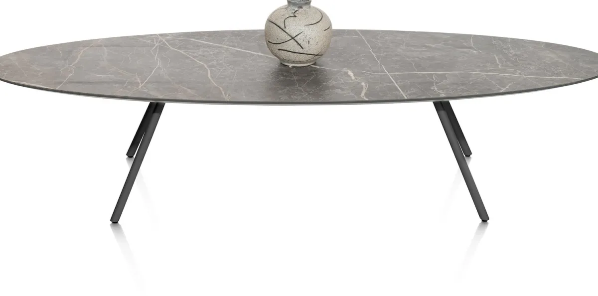 Clearance XOOON NIORA salontafel 150 x 50 cm – HPL marmer licht grijs – grafiet