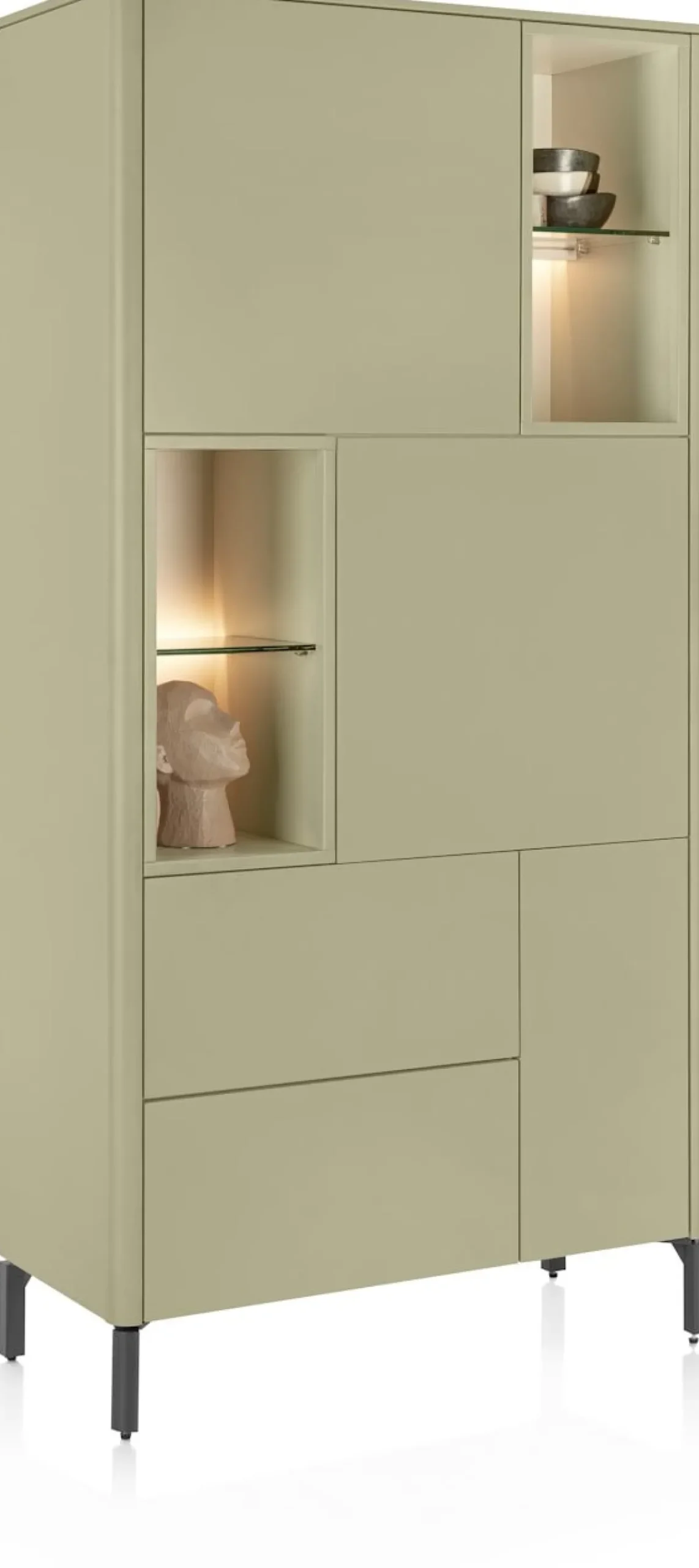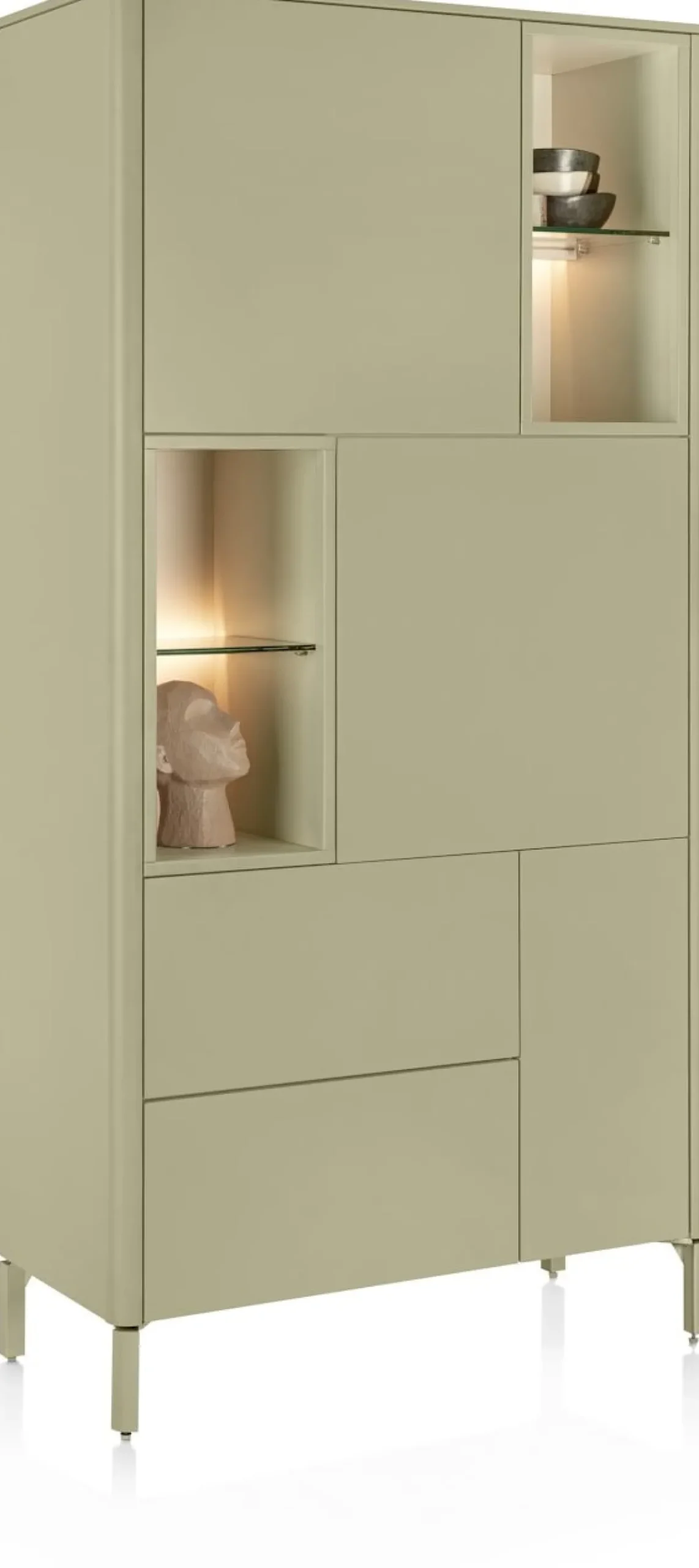 Clearance XOOON Trentino, Bergkast 95 cm. – 3-deuren + 2-laden + 4-niches – Olijf