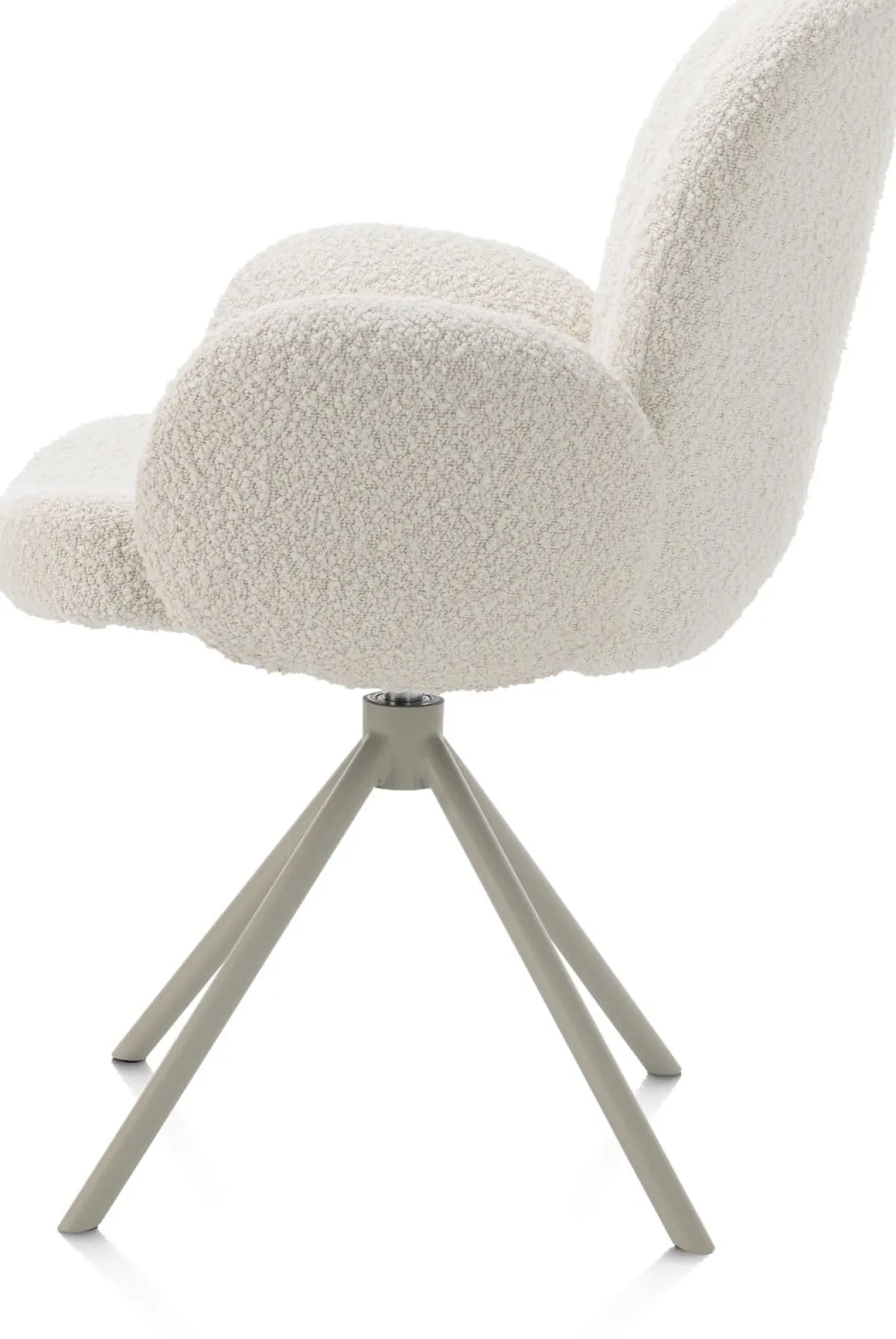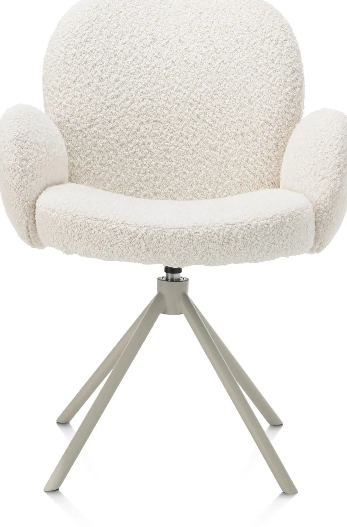 Armstoel JAXON is een wolk van een stoel waar je direct verliefd op wordt. Niet alleen vanwege zijn aaibaarheid dankzij de zachte stof Brioni, maar ook dankzij het strakke 4-poots onderstel in silk grey. Voor extra gemak is deze eetkamerstoel 180 graden draaibaar en voorzien van terugdraaifunctie. Naast deze ivoorkleurige uitvoering is JAXON er ook in de kleuren kiezel en lever. Zie jij ze al staan aan jouw eetkamertafel? Voor een ruimtelijker effect is JAXON ook verkrijgbaar als eetkamerstoel zonder armen.