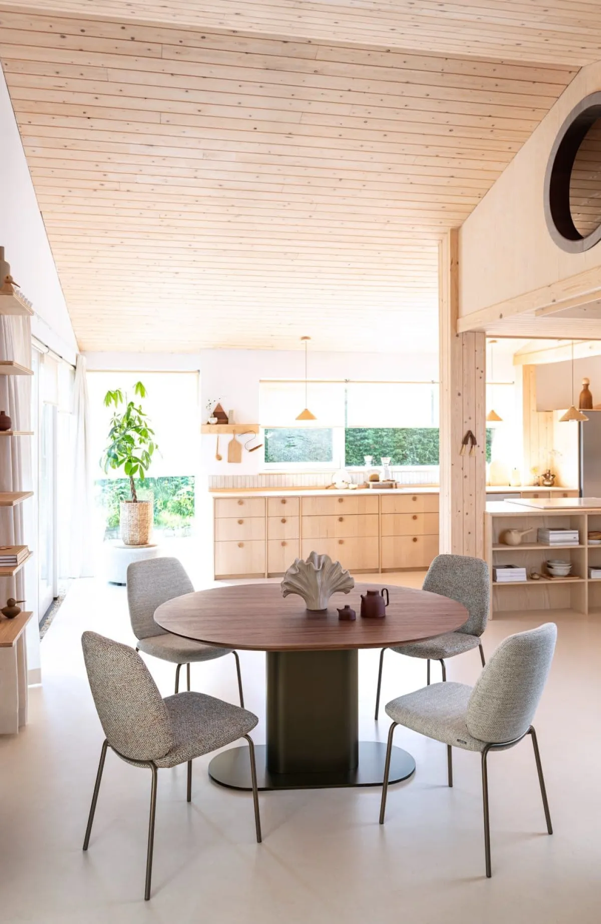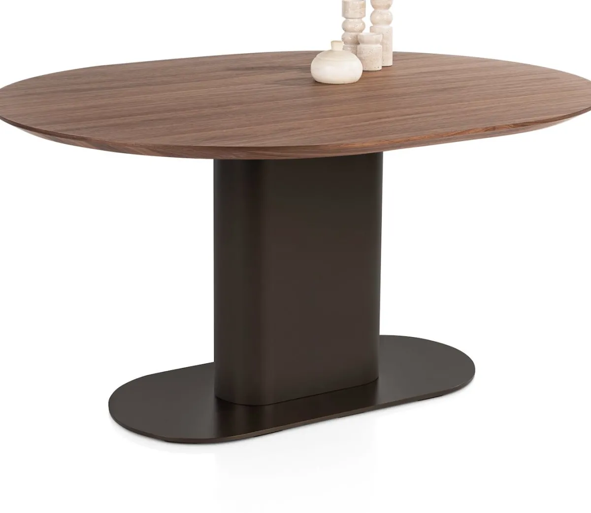 Eetkamertafel BRIANZA straalt luxe en warmte uit dankzij het ovalen blad in walnootfineer. De verjongde rand geeft de tafel een lichte uitstraling, terwijl de ronde vormen zorgen voor een vriendelijke look. De metalen kolompoot in steelbrown springt in het oog met zijn ellipsvorm en biedt dankzij de verzwaarde kern ultieme stabiliteit. Deze tafel is ideaal voor gezellige diners of lange avonden natafelen. Liever een lichtere uitstraling? Kies dan voor de variant met een crèmekleur poot. Ontdek ook de andere tafels en kasten uit de BRIANZA collectie en stel zo jouw eigen elegante interieur samen.