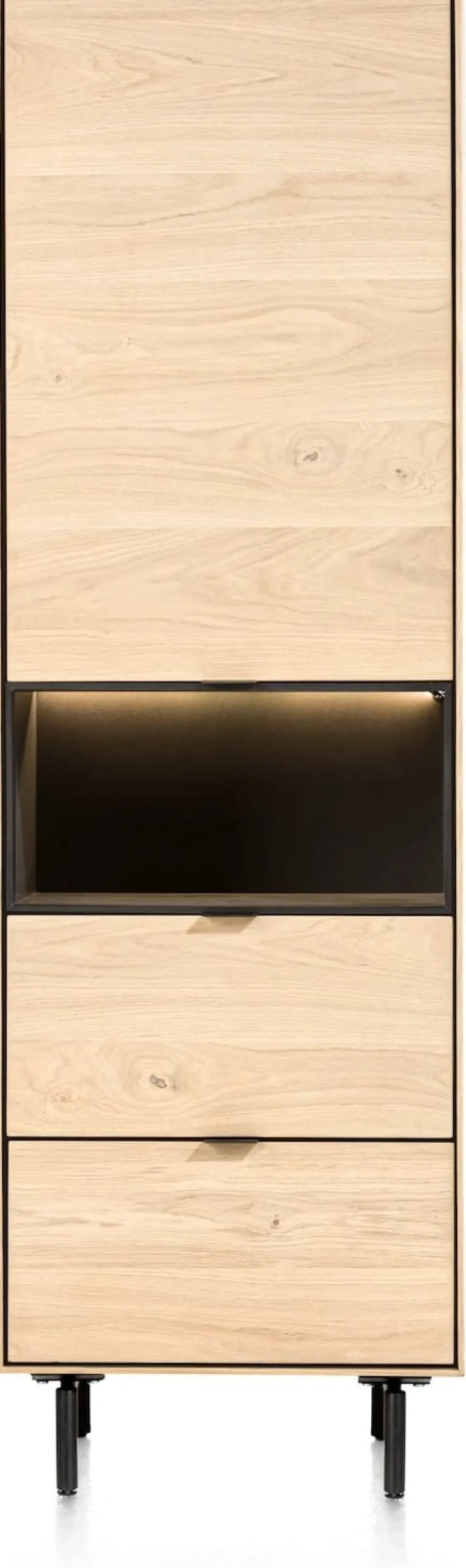 Discount XOOON Elements, bergkast smal – 60 cm. – 1-deur + 2-laden + 1-niche + led incl. metalen poten – natural
