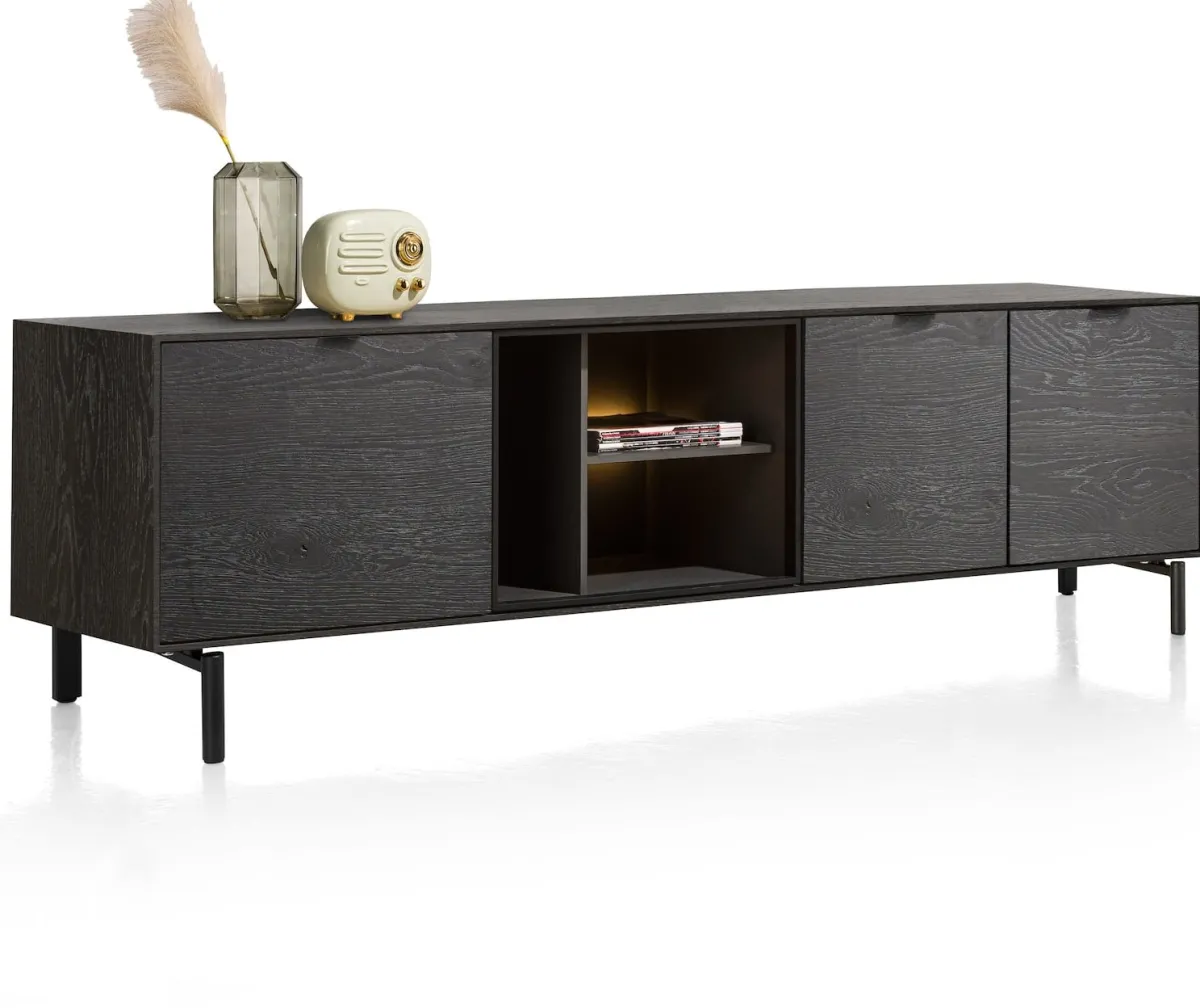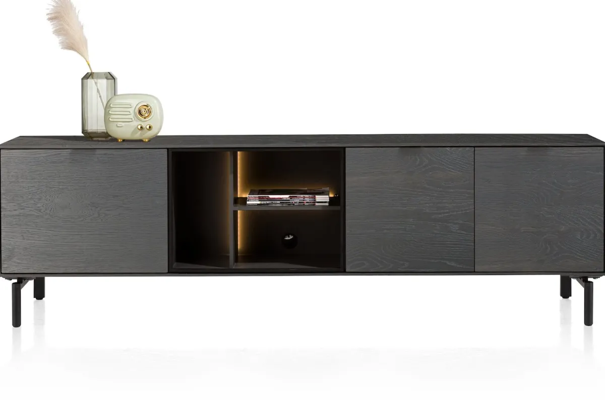 Discount XOOON Elements, lowboard 210 cm. – hang + 2-deuren + klep + 3-niches + led incl. metalen poten – Onyx