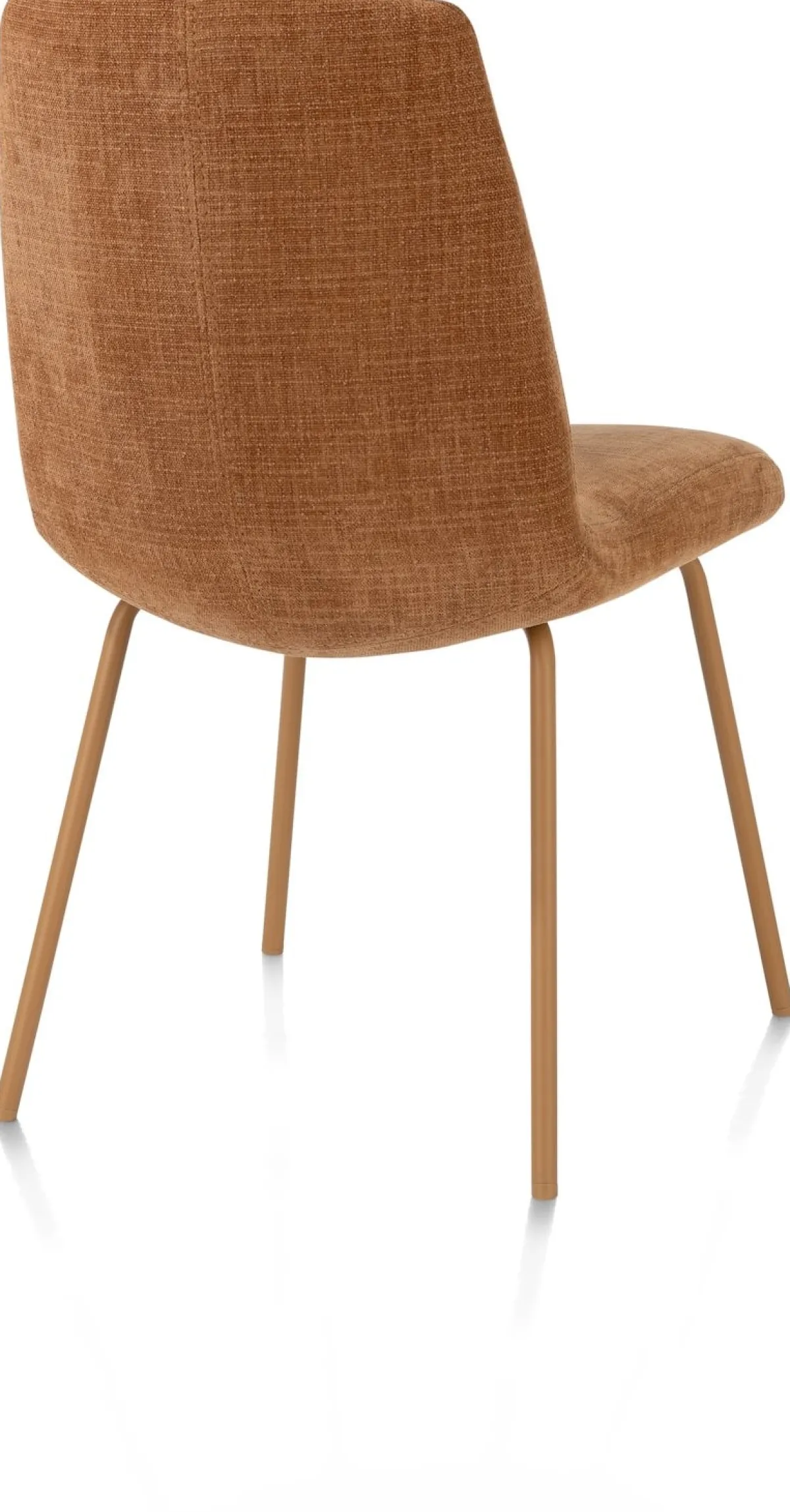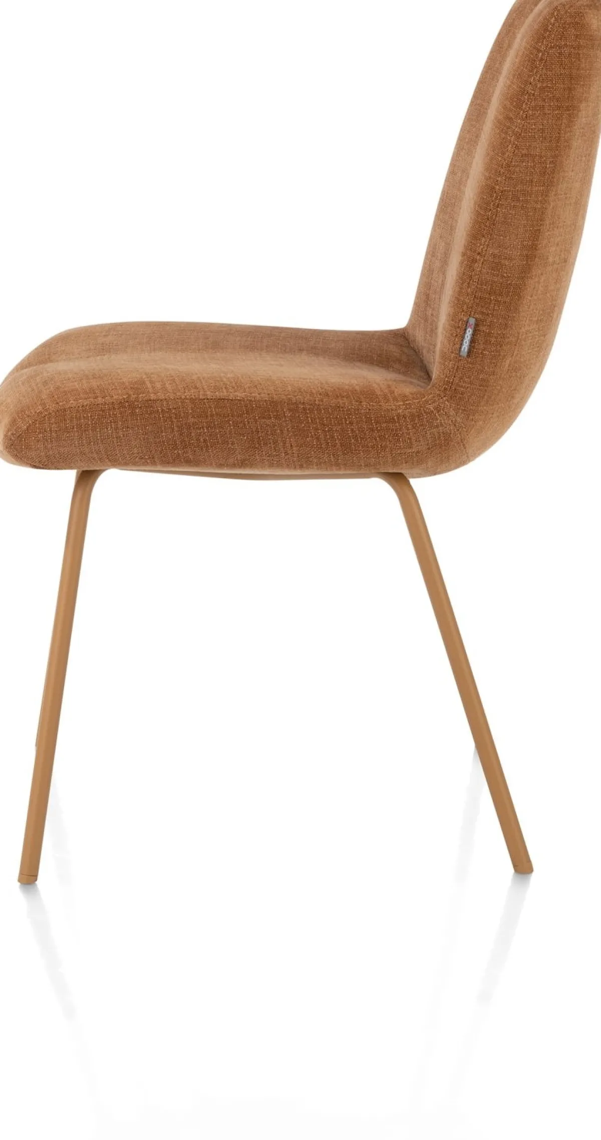 Geef je interieur een warme uitstraling met deze heerlijke eetkamerstoel FILIPO in de kleur koper. FILIPO zit niet alleen lekker comfortabel; hij komt ook nog eens prachtig tot zijn recht in elk interieur. De eetkamerstoel is bekleed met stof Cadiz, die ook verkrijgbaar is in de kleuren crème en olijf. Deze koperkleurige variant heeft een rank onderstel van metaal in de kleur biscuit, wat de eetkamerstoel een mooie ton-sur-ton look geeft. Zie jij hem al staan aan jouw eetkamertafel?