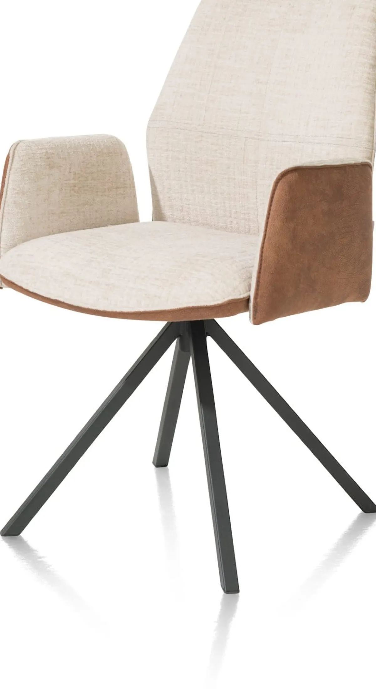 Zoek je een armstoel met een stoer en modern design? Wat dacht je van deze armstoel FRANKY uit de collectie van XOOON?! FRANKY is een pronkstukje dat geheel naar eigen wens te personaliseren is. Zo maak je zelf een keuze uit verschillende stoffen en kleuren in uni of duo. De armstoel heeft een zwartmetalen centrale 4-poot en komt qua looks mooi tot zijn recht in een stoer, industrieel interieur of in een Scandinavische woonstijl. FRANKY is ook verkrijgbaar met draaibaar frame en je shopt de stoel naar wens ook zonder arm.