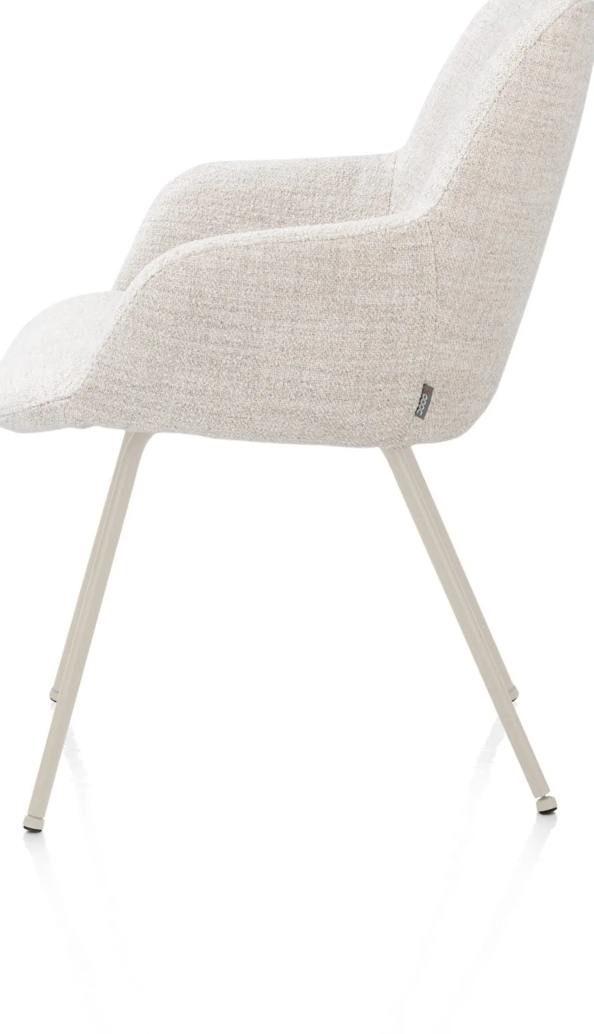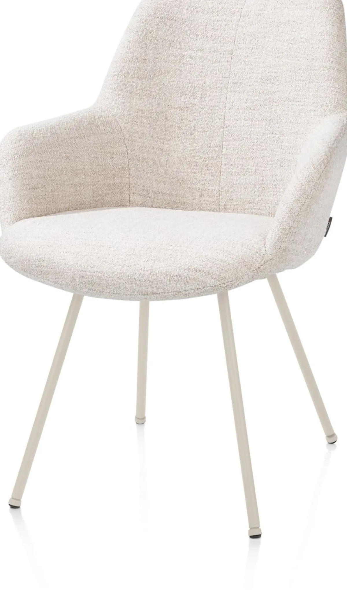 De MATS armstoel in volledig crèmekleurige uitvoering straalt rust en elegantie uit. De stoel is bekleed met stof Luton, een stof met een hoog aaibaarheidsgehalte. Dankzij de afgeronde vormen, comfortabele armleuningen en ruime zitting geniet je van optimaal zitgemak. Het 4-poots frame in dezelfde crèmekleur maakt de ton-sur-ton look helemaal af en zorgt voor een frisse, moderne basis. Deze stoel past moeiteloos in uiteenlopende interieurs en leent zich perfect voor lange avonden tafelen. Armstoel MATS is verkrijgbaar in diverse kleuren en uitvoeringen, zodat je altijd een variant vindt die bij jouw woonstijl past.