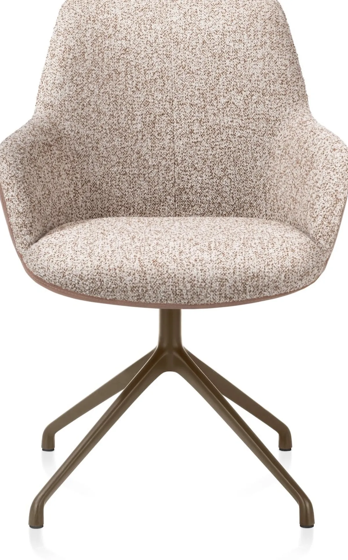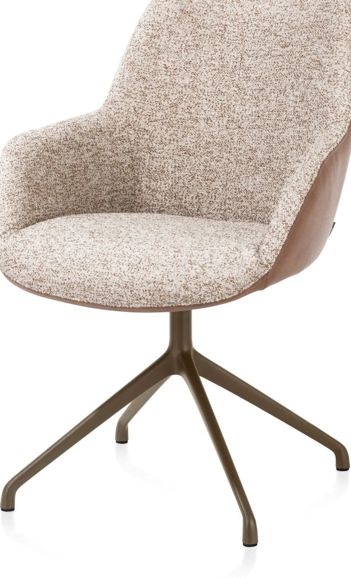 Wil jij jouw eetkamer upgraden met een praktische en tegelijk stijlvolle armstoel? Laat je verrassen door MATS, een 360° draaibare armstoel met een aluminium 4-poots frame in de kleur steelbrown. Hij heeft vriendelijke, ronde vormen en is bekleed met een combi van stof Pala in de kleur cognac + stof Luton in het koper. MATS zit heerlijk en is uitgerust met comfortabele armleuningen. Je schuift deze armstoel makkelijk onder de tafel en qua kleur, bekleding en onderstel shop je hem in verschillende varianten.