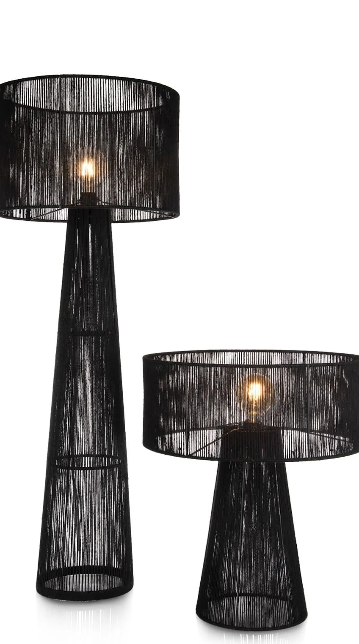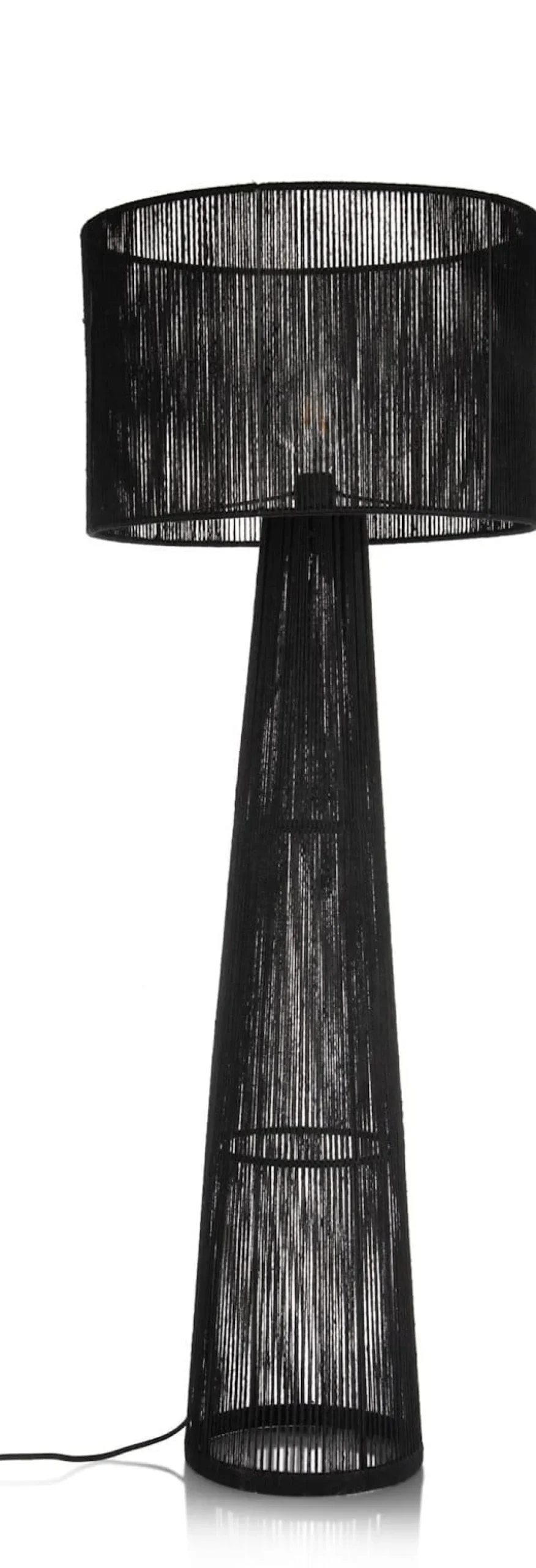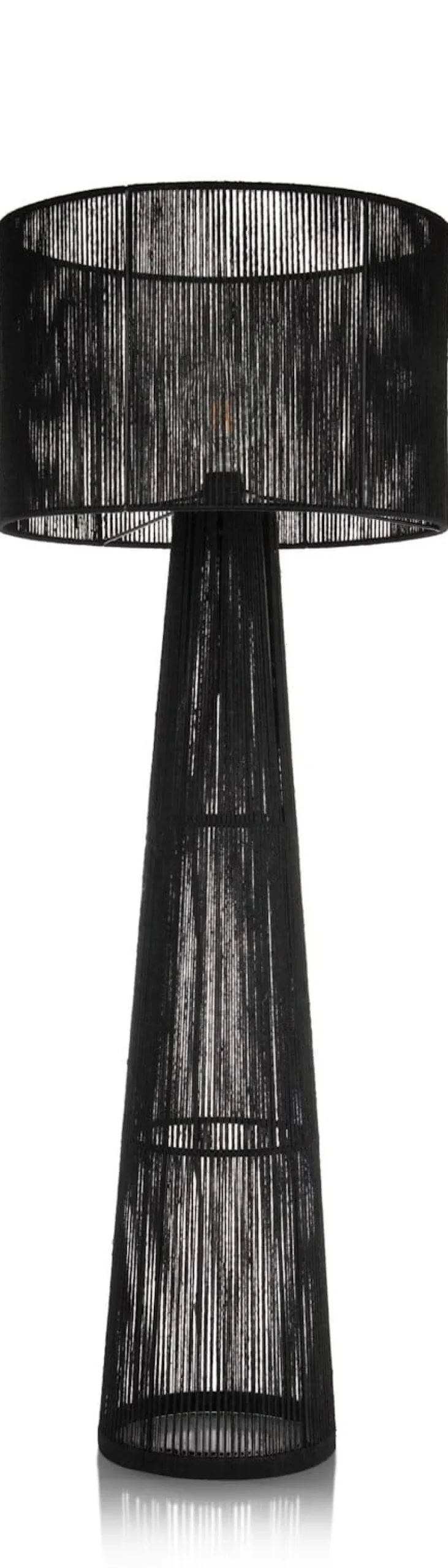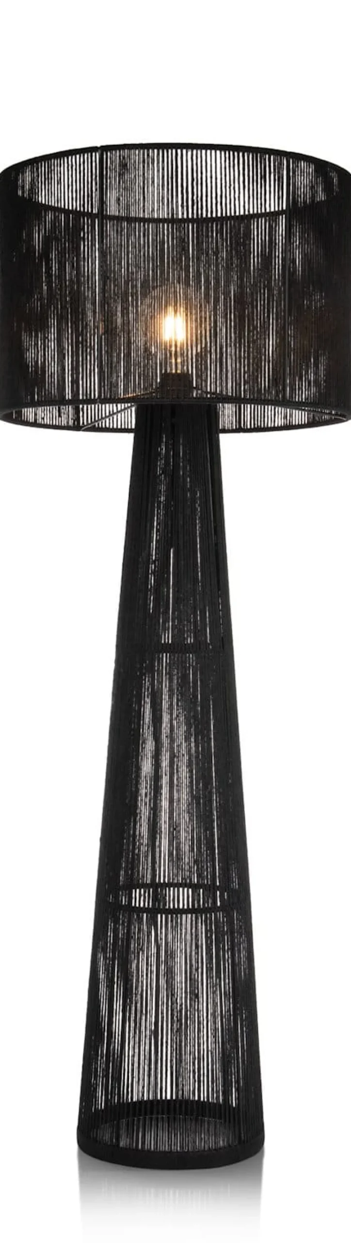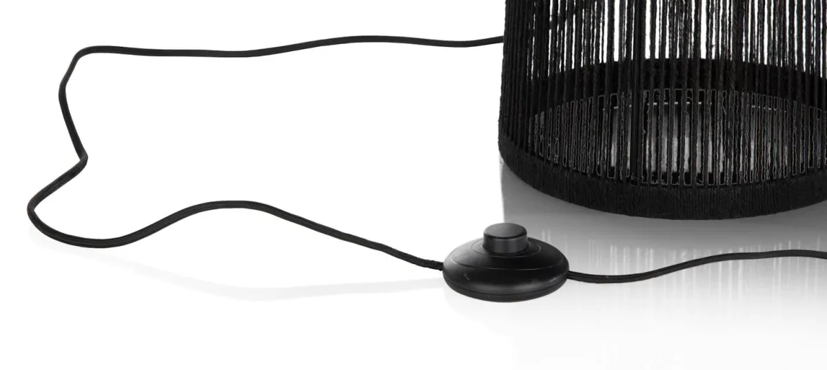 De TALI lampenserie van COCOmaison bestaat uit maar liefst 5 verschillende lampen die je onderling allemaal kunt combineren. Elke lamp heeft een strak design en is gemaakt van handgeweven jute draad. Deze vloerlamp heeft een hoogte van 120 cm en een doosnede van 46 cm. Hij is verkrijgbaar in het zwart en in naturel, net als de tafellamp met een vergelijkbaar ontwerp. Dit is de zwarte variant. In de bijpassende hanglamp worden die twee kleuren gecombineerd. Elke lamp heeft een E27 fitting voor 1 ledlamp.