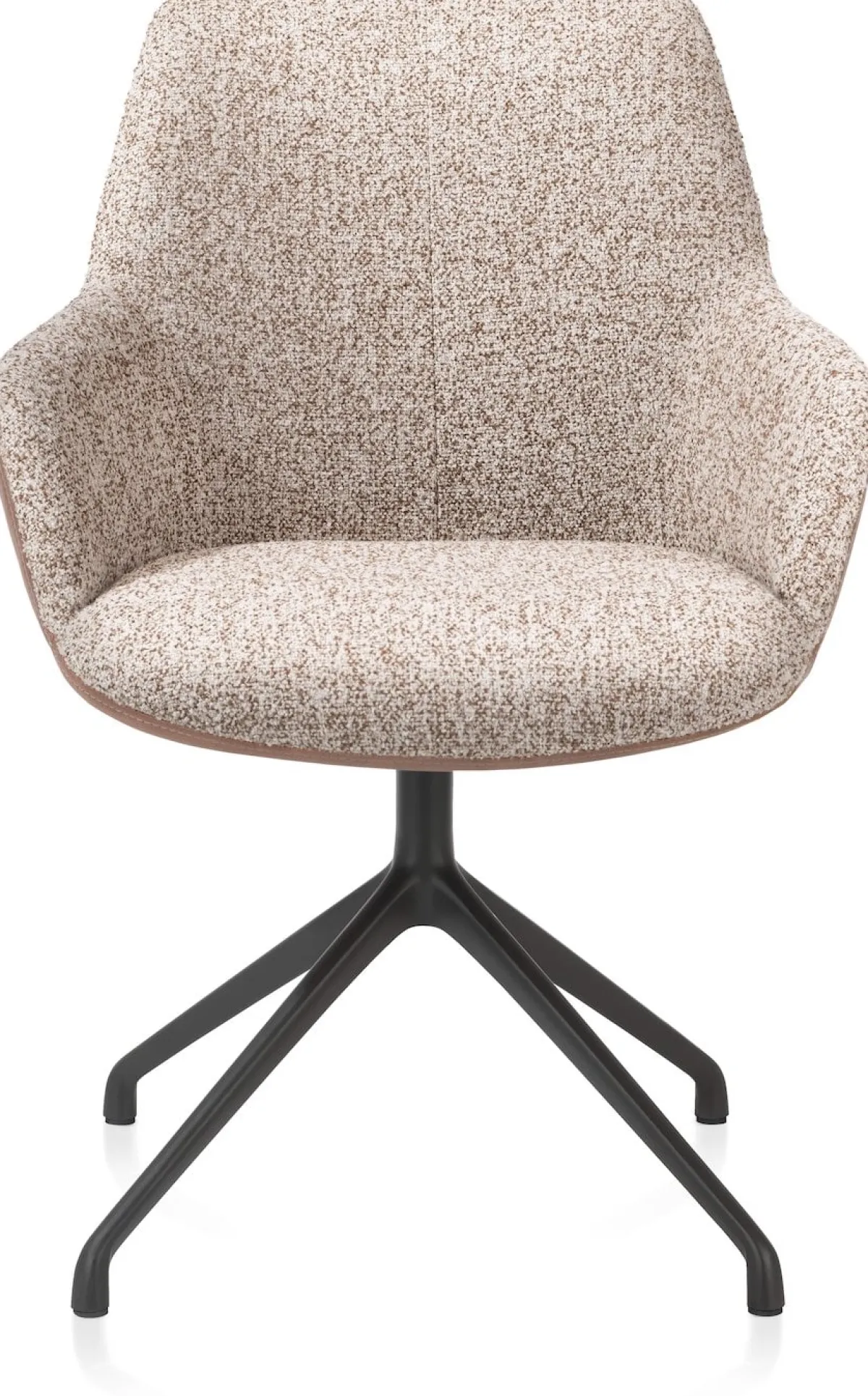 Ben je op zoek naar een praktische en tegelijk stijlvolle armstoel? Kijk dan eens naar MATS, een 360° draaibare armstoel met een aluminium 4-poots frame in de kleur rough off black. Hij heeft een moderne ronde vormgeving en is bekleed met een combi van stof Pala in de kleur cognac + stof Luton in het koper. MATS heeft comfortabele armleuningen en een heerlijke zit. Hij is makkelijk onder de tafel te schuiven en qua kleur, bekleding en onderstel verkrijgbaar in verschillende uitvoeringen.