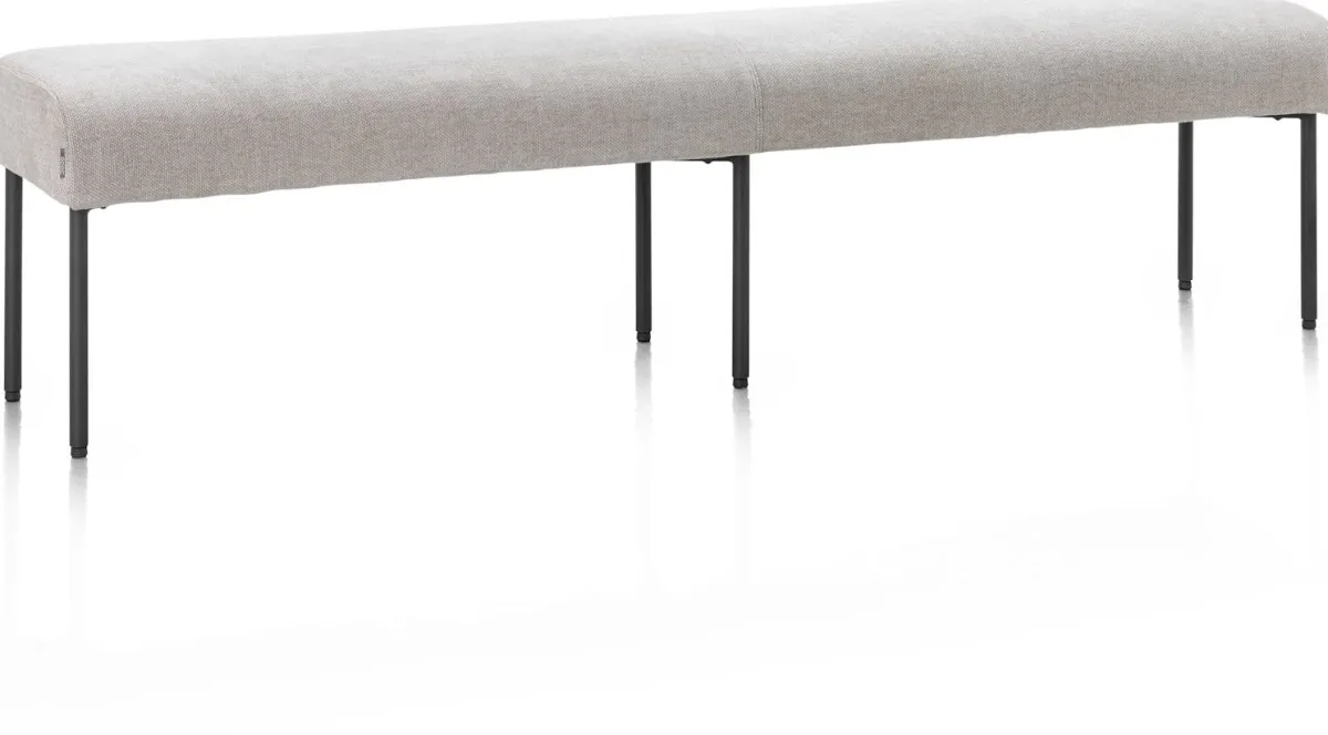 Droom je van een stijlvolle eetkamerbank zonder rugleuning? Kijk dan eens naar eetkamerbank REVERSO van XOOON. Deze eetkamerbank zonder rugleuning is bekleed met de prachtige chenillestof Livigno in kiezelkleur, die tevens verkrijgbaar is in het bruin. REVERSO staat op een rank metalen onderstel in de kleur grafiet. Je stelt deze eetkamerbank qua opstelling naar eigen wens samen. Doordat alle elementen koppelbaar zijn, kun je ze oneindig met elkaar combineren. Dit element van 200 cm is ook met rugleuning verkrijgbaar.