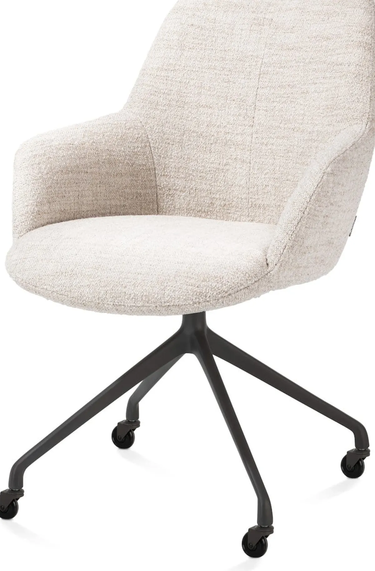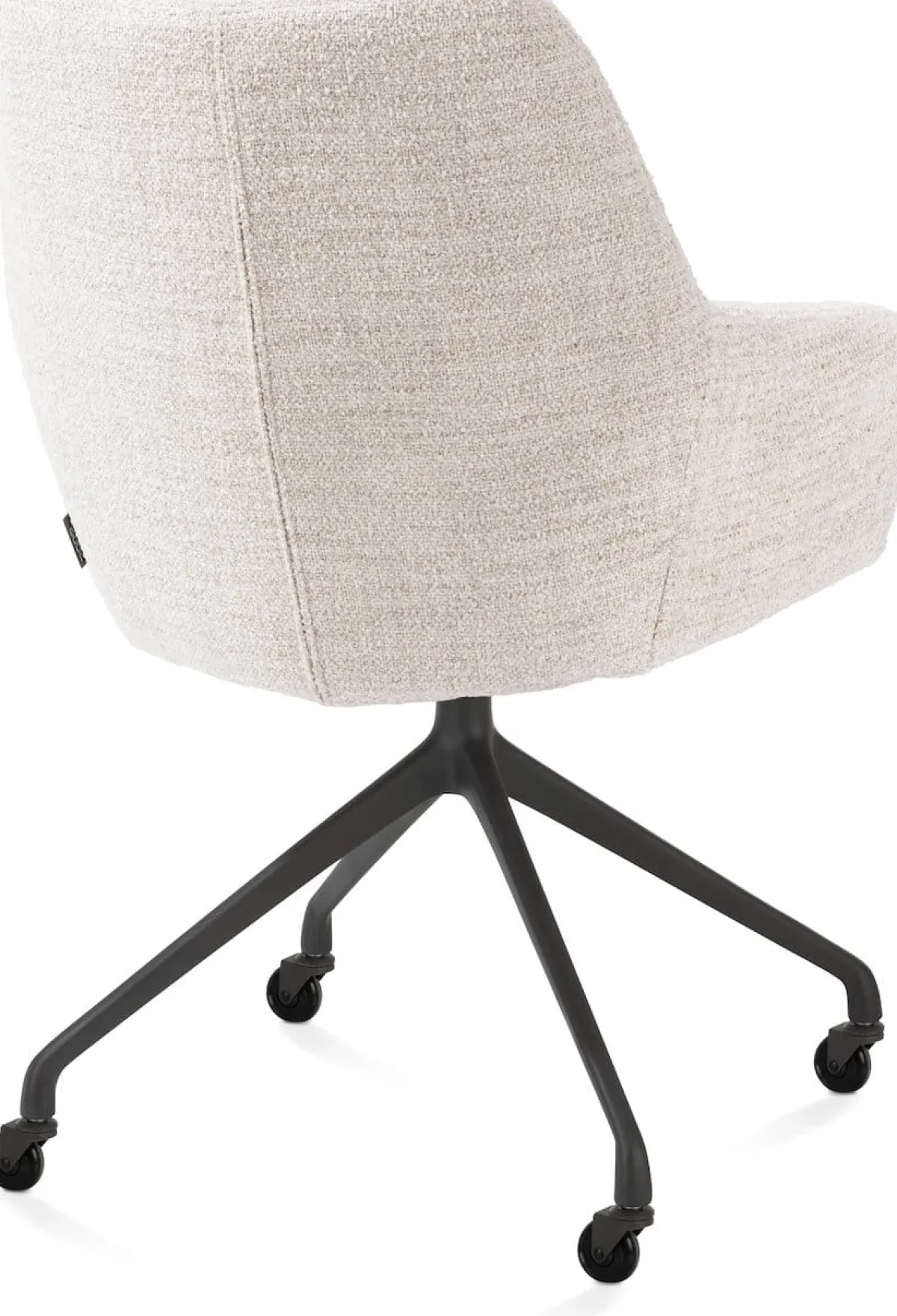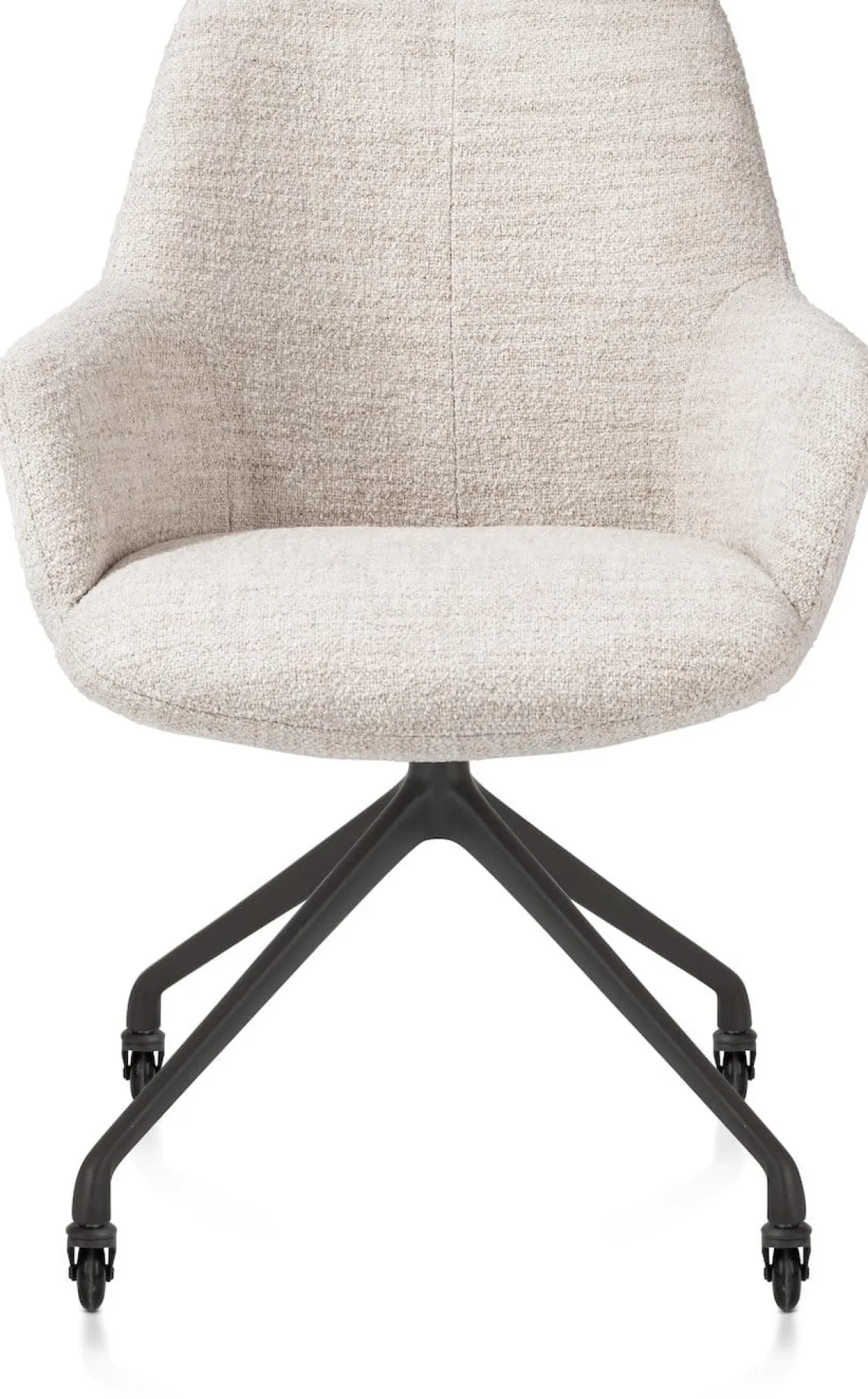 New XOOON Mats, armstoel aluminium frame wielen rough off black – stof Luton – Creme