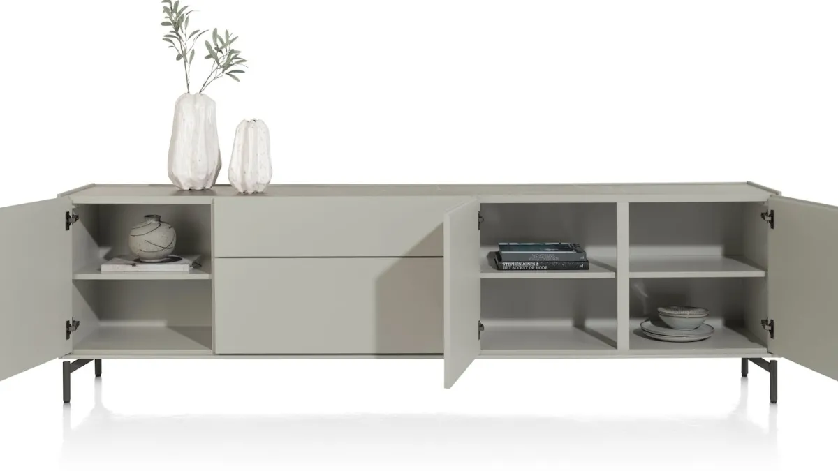 New XOOON NOON dressoir 240 cm – 3-deuren + 2-laden – lichtgrijs