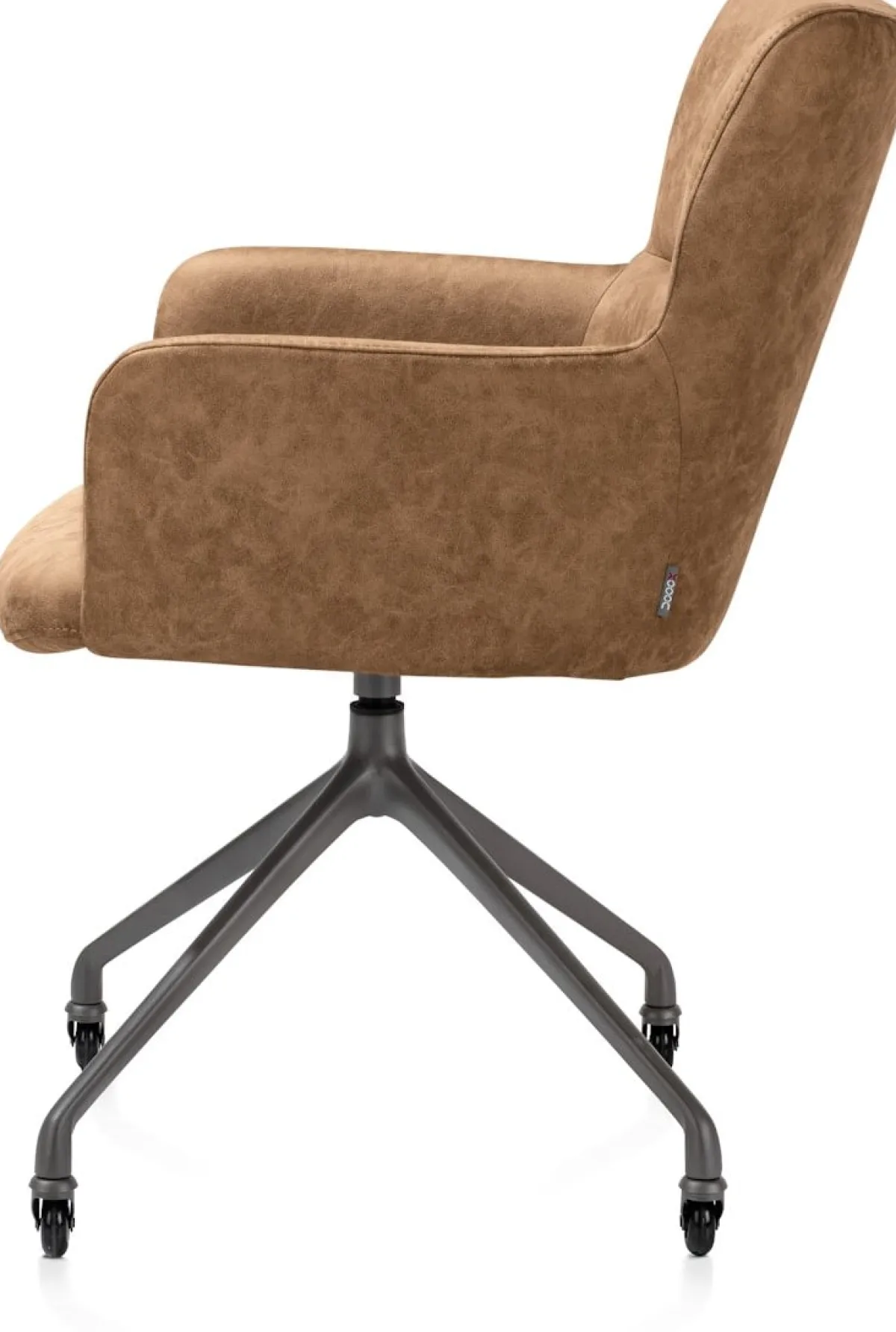 Met zijn warme desertkleurige bekleding en praktische wieltjes is armstoel SAGE een perfecte mix van comfort, stijl en flexibiliteit. De stoel is uitgevoerd in stof Oregon; een stof met een natuurlijke uitstraling die uitnodigt tot ontspannen zitten. Het graphietkleurige aluminium onderstel op wielen maakt de stoel makkelijk verplaatsbaar; ideaal voor aan de eettafel of in een informele werkruimte. Armstoel SAGE is verkrijgbaar in meerdere kleuren en afwerkingen. Ontdek jouw favoriet.